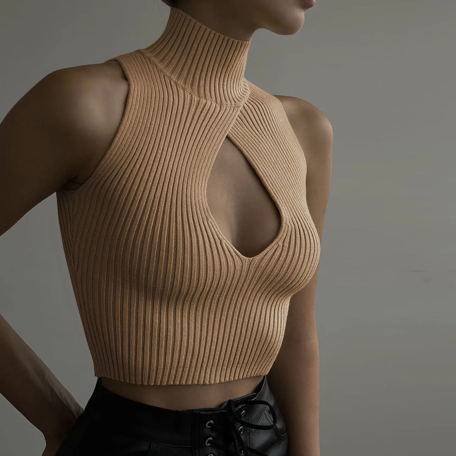 Casual Basic Ribbed Knit Crop Top for Women Summer Sleeveless Hollow Out Tank Cute Tee Grunge Y2K Korea Fashion Streetwear 2345