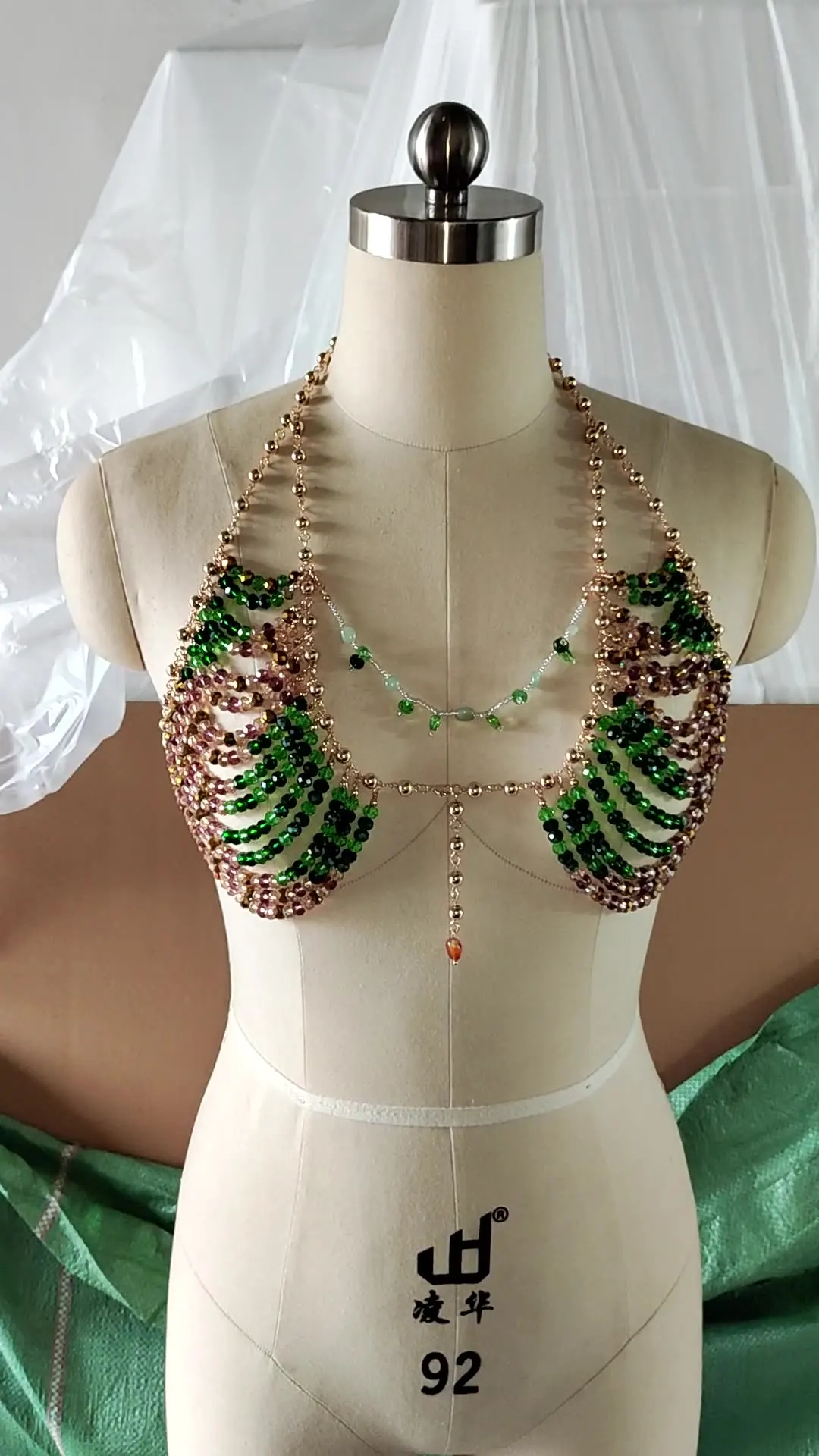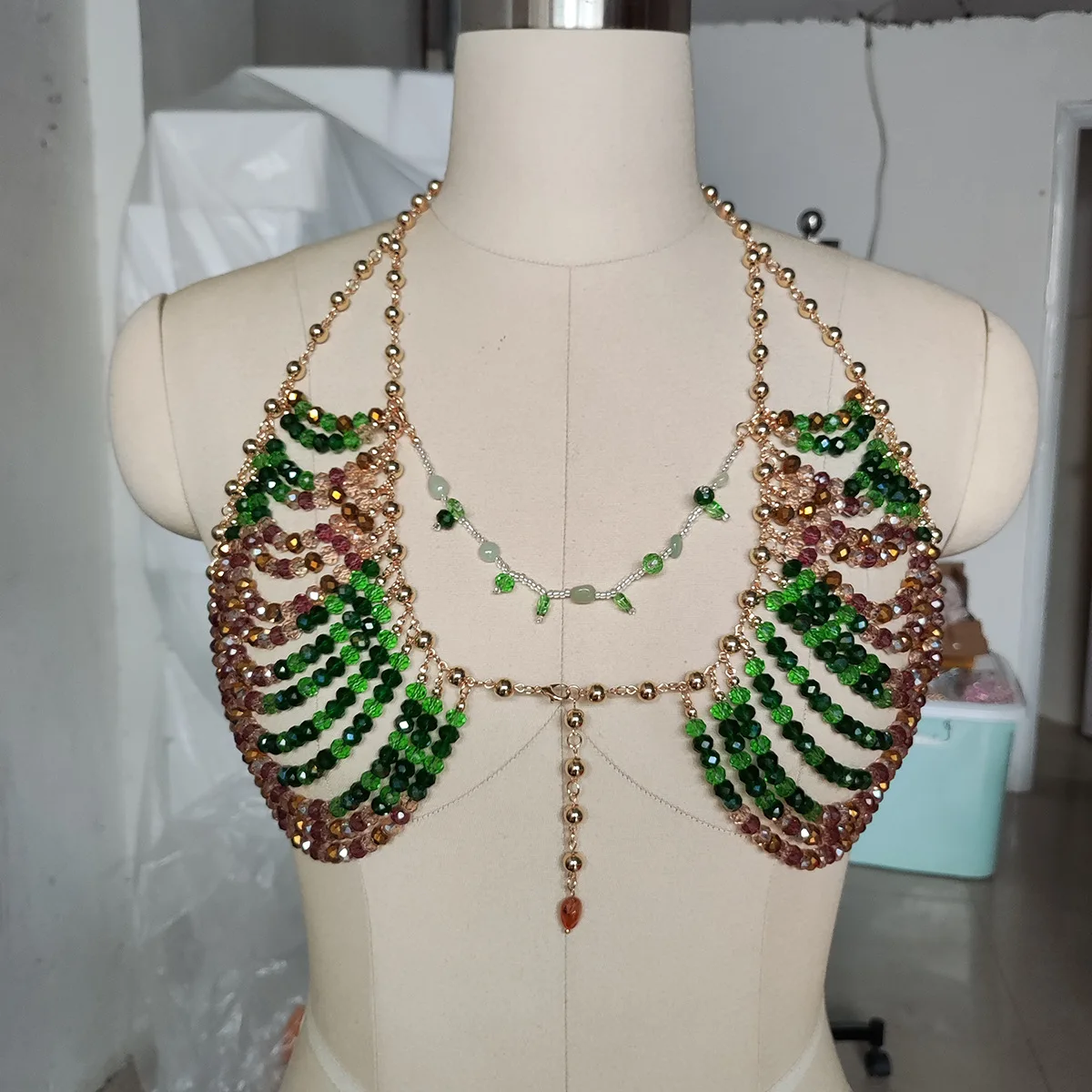 Sexy Green Beaded Crystal Camisole Chest Bra Lingerie Chain Women Bikini Elegant Festival Nightclub Body Jewelry Y2K Accessories