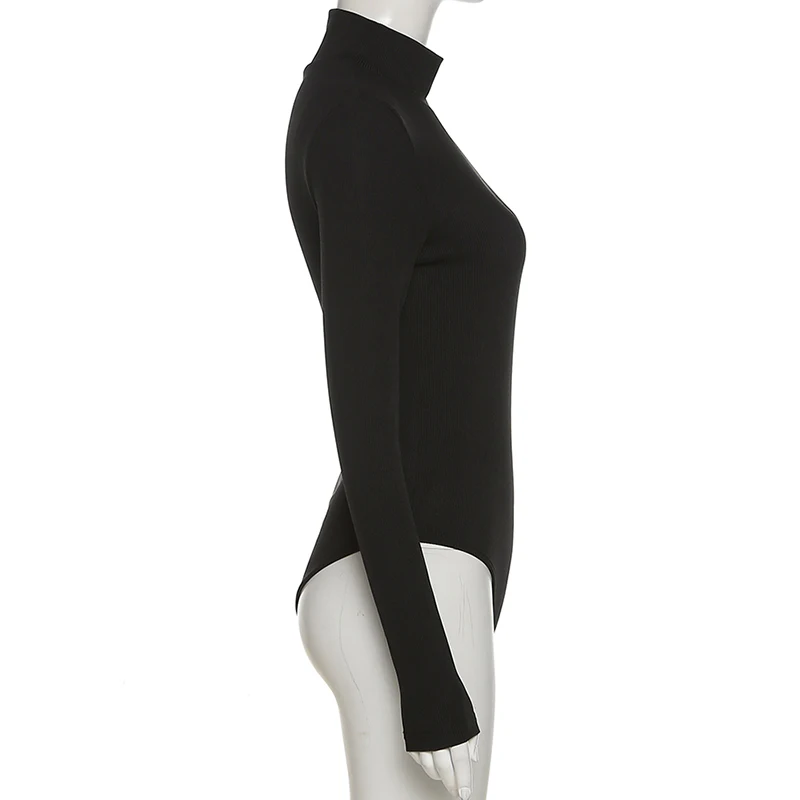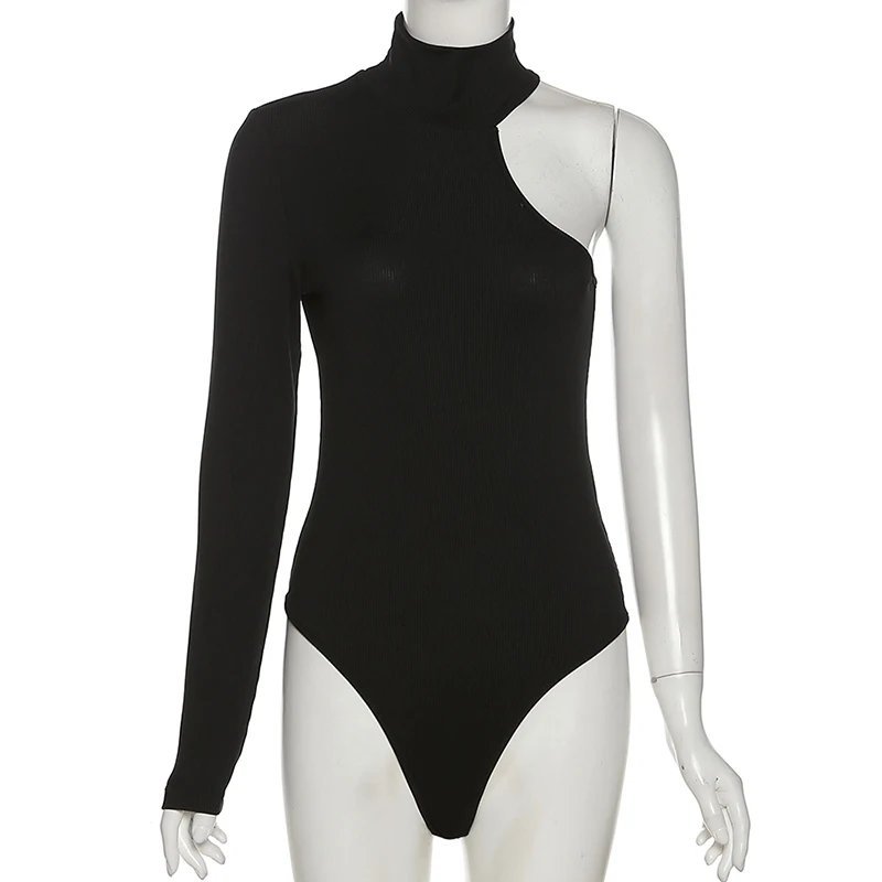 One-Shoulder Knitted Crew Neck Bodysuit Women Sexy Long Sleeve Black Winter Autumn Woman Slim Body Romper #1724