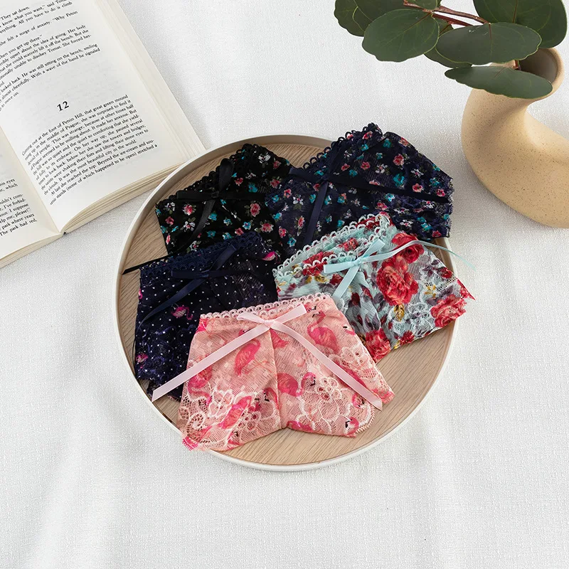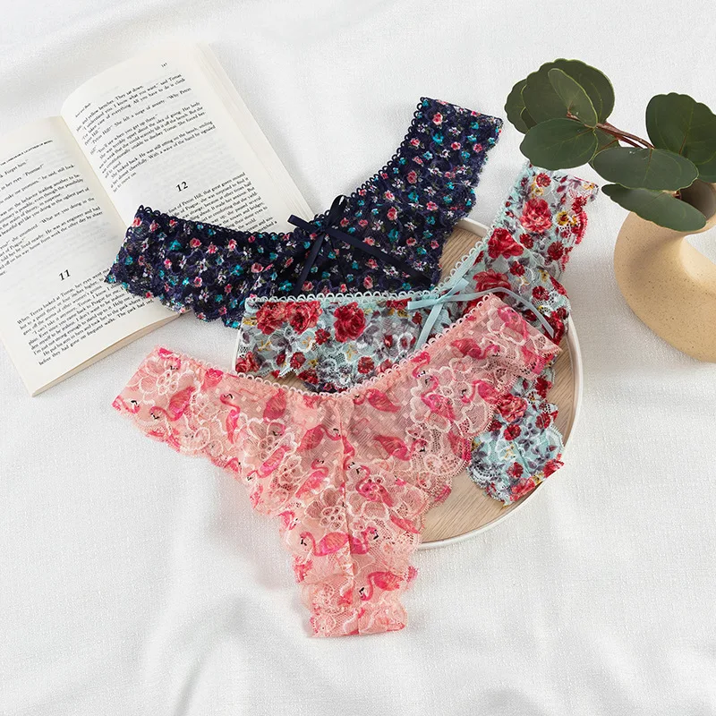 Sexy Print Lace Thongs for Women Underpants T Panties Seamless Comfortable Briefs Breathable Lingerie Female Underwear 0740