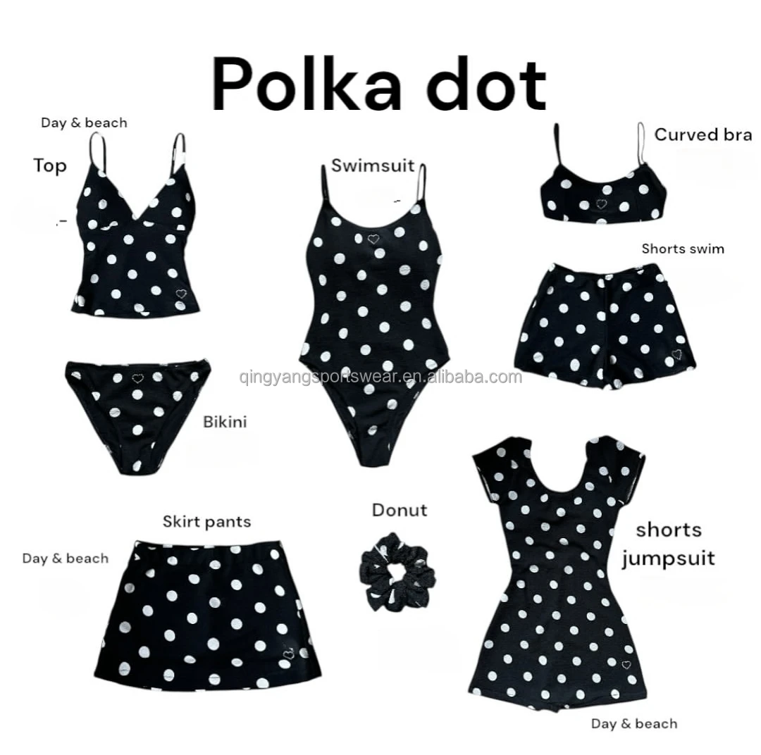 Custom Bikini Set with Logo Polka Design Full Body Print Lace-Up Bra Swimsuit 2-Piece