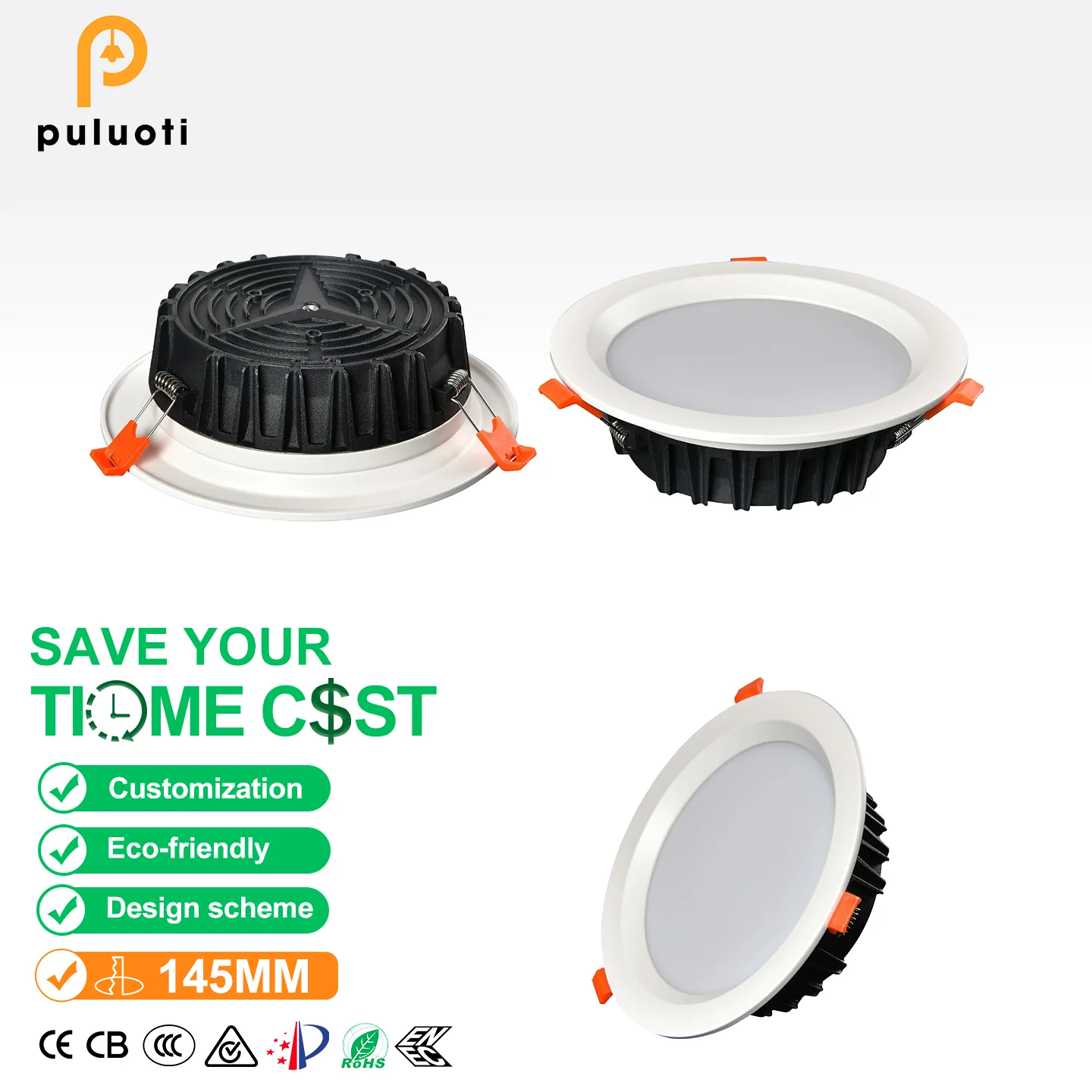 Direct Manufacturer Supply Premium Aluminum Recessed Downlight with 145mm Aperture, for Home Decor and Commercial Applications