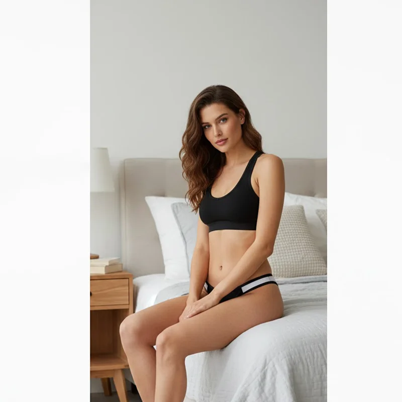 Wholesale Sexy Underwear with High Contrast Racerback Athletic Silhouette Wide Elastic Underband Women Lingerie for Sexy Panties
