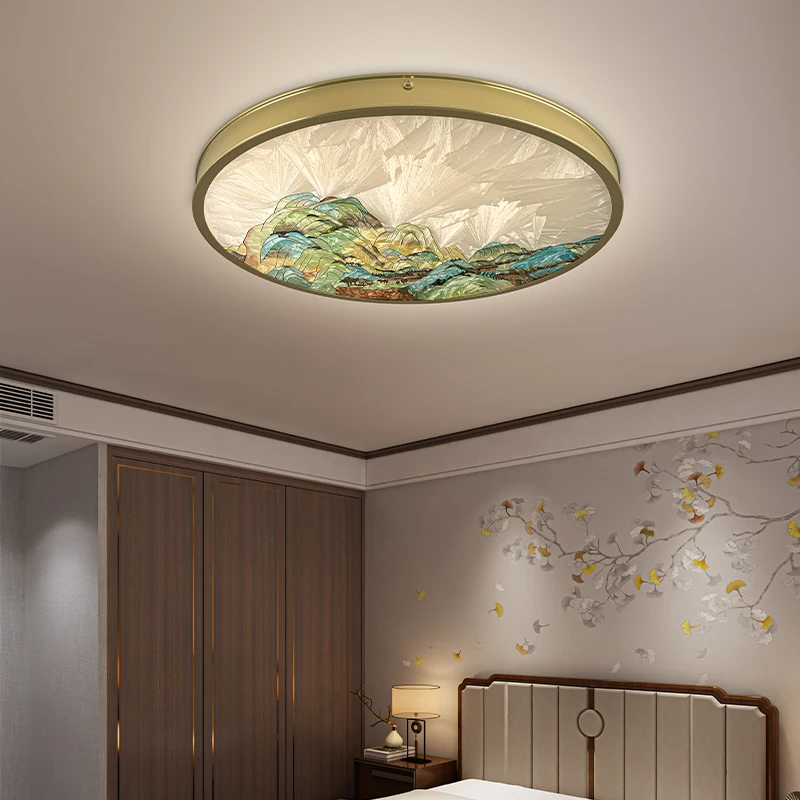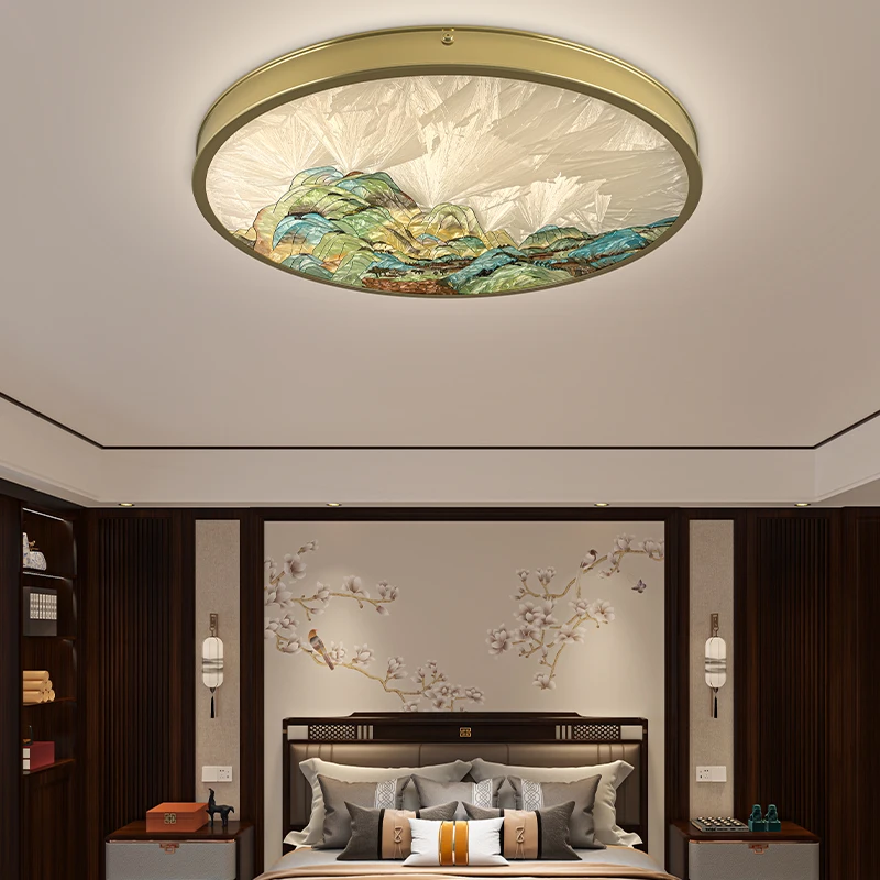 Enamel Colored New Chinese Style Bedroom Ceiling Light Dining Room Study Room Copper Light Master Bedroom Ceiling Lamp