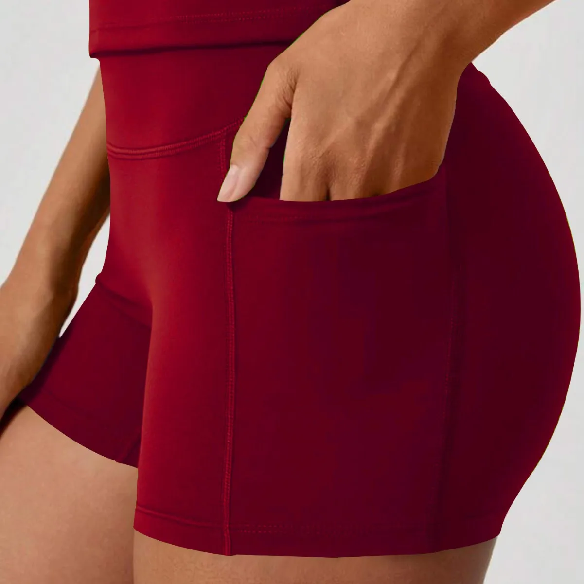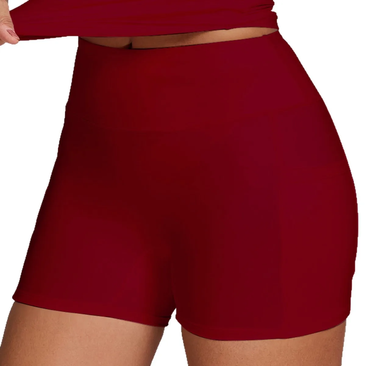 New Summer Women's High Waist Solid Color Nylon Quick Drying Yoga Suit with Tummy Control Belt Pocket Outdoor Running Shorts