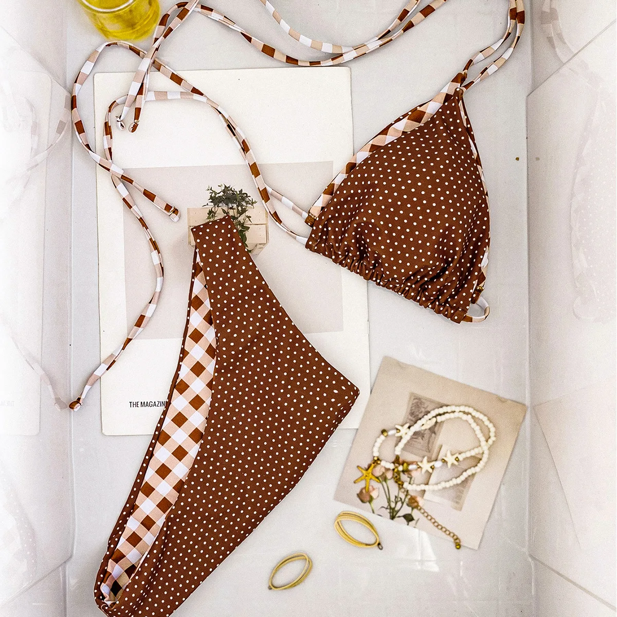 New Summer Women's Sexy and Fashionable Versatile Printed Lace up Backless Split Bikini Swimsuit
