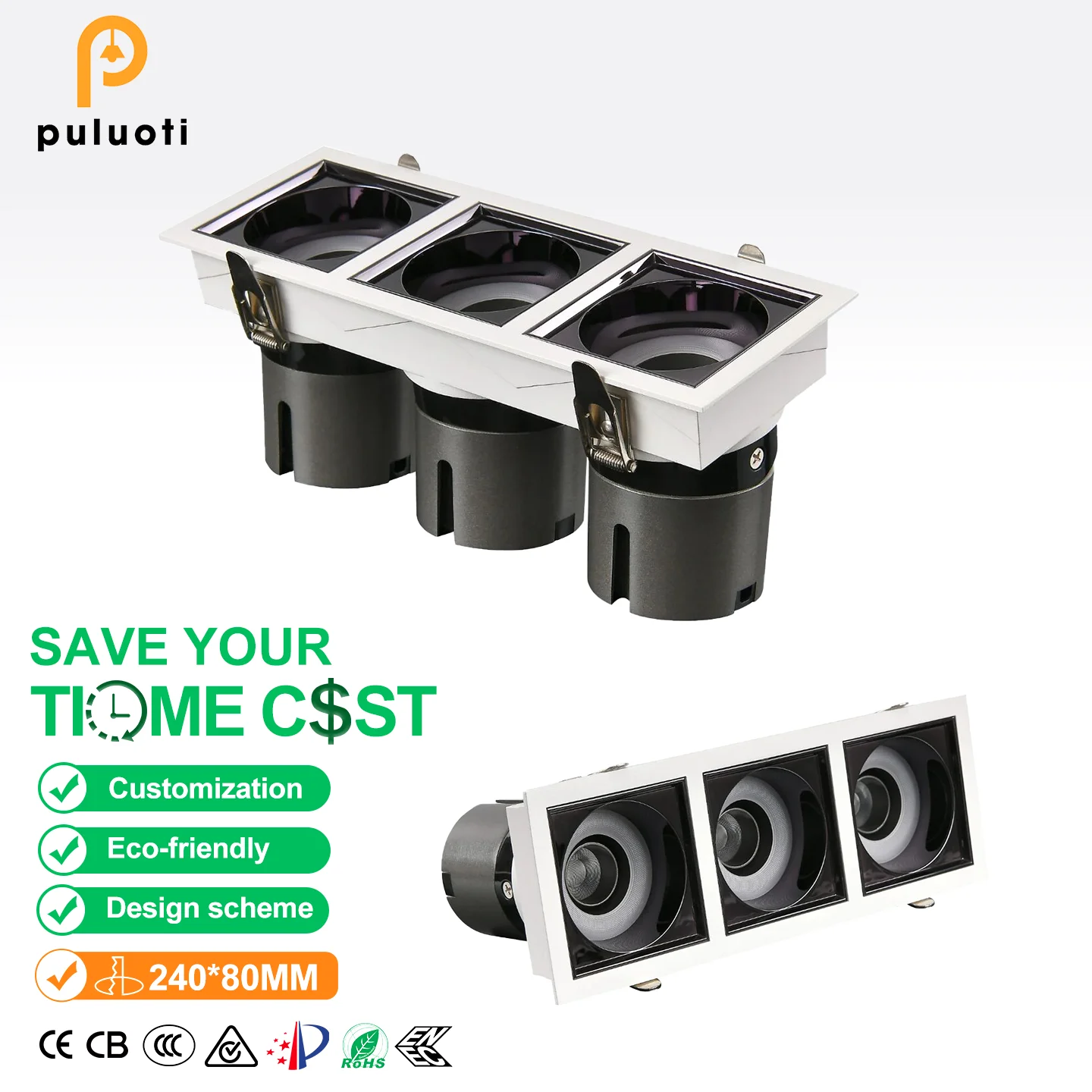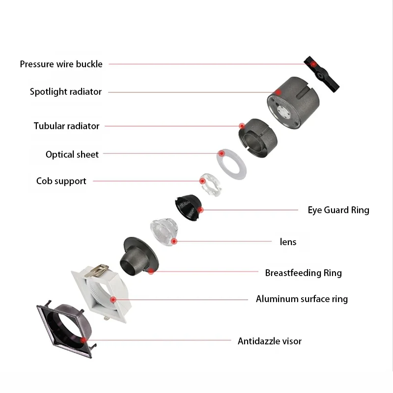 Modern Design Indoor Home Office Square Built-in Adjustable Aluminum LED Spotlight Wish Full-spectrum High Color Rendering Index