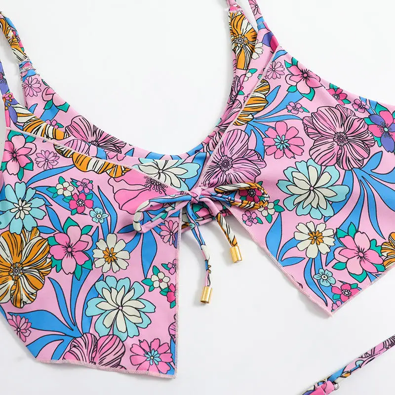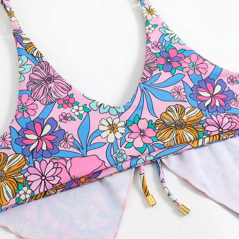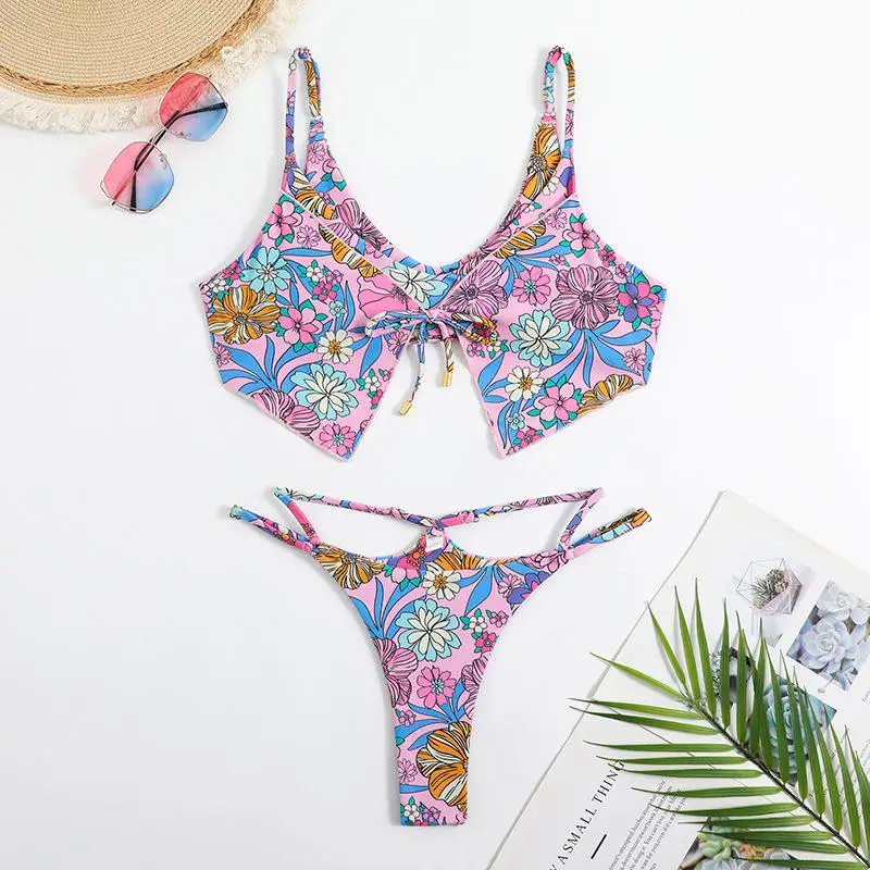 MLY Ruffle Bikini Summer Two Piece Suit Sexy Swimwear Bandage Biquini Triangle Swimsuit Printed Bathsuit