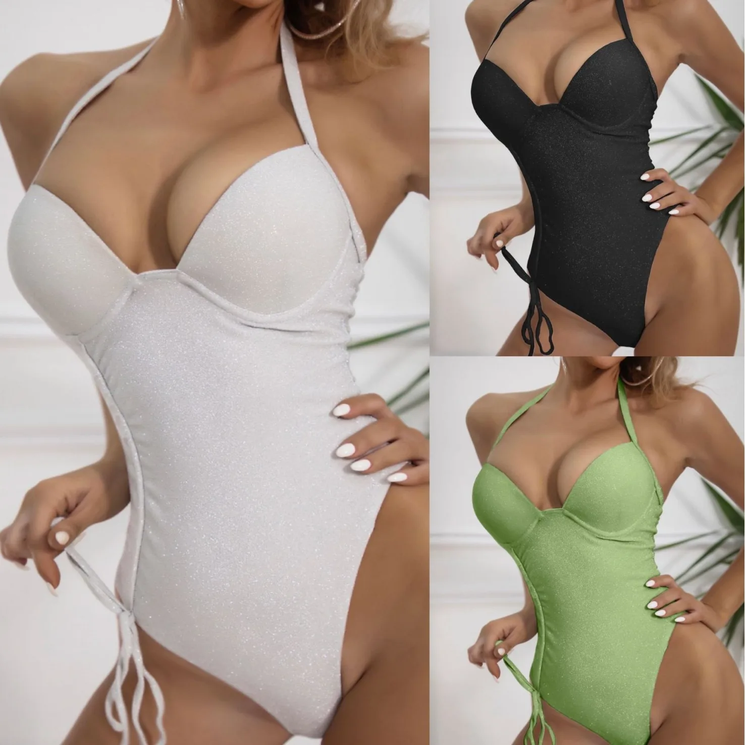 New Summer Women's Sexy Fashion Solid Color Versatile Hanging Neck Strap One Piece Swimsuit