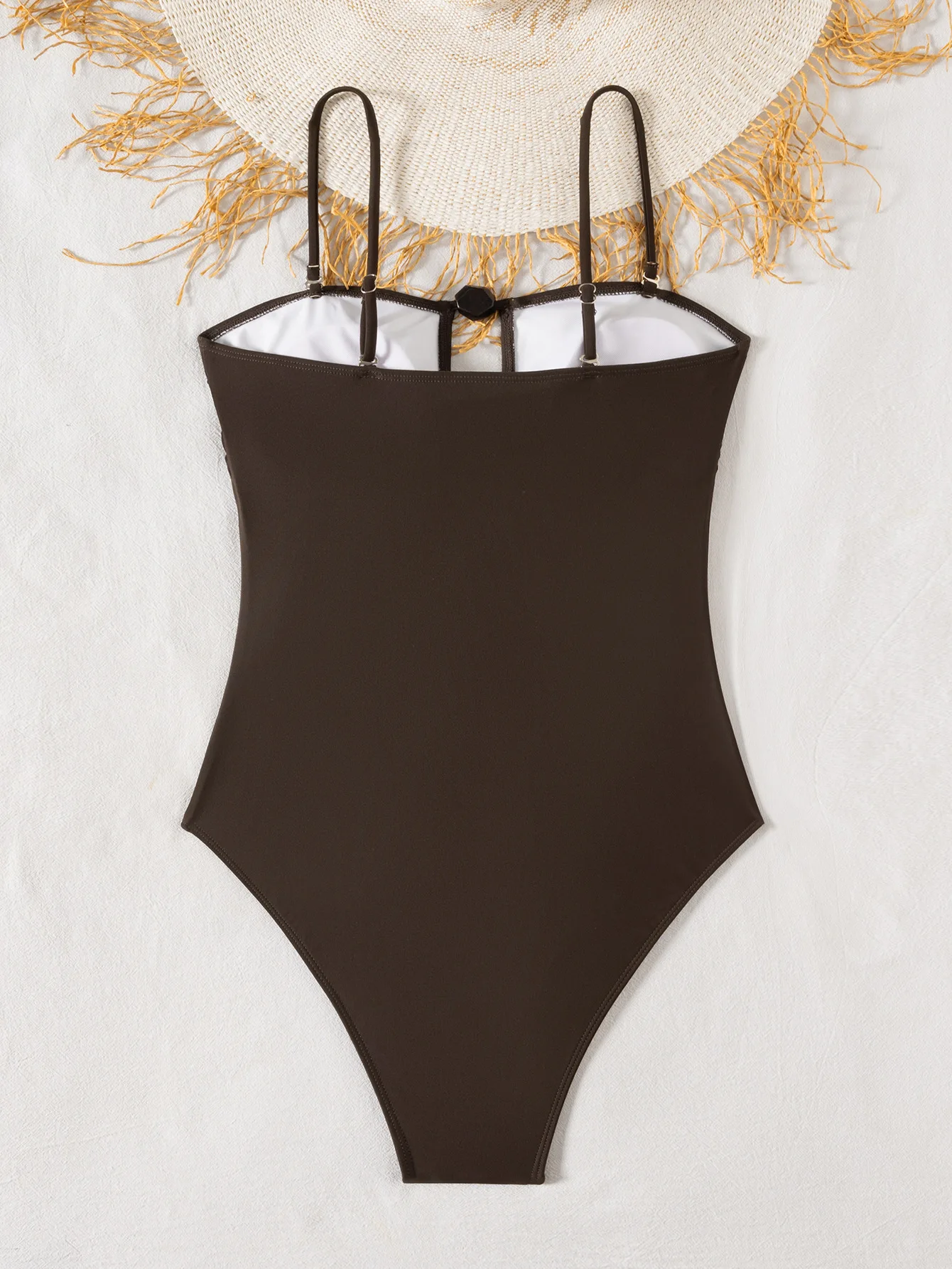 New Summer Women's Sexy and Solid Color Slim Fit Detachable Shoulder Strap Pearl Accessory One-piece Swimsuit