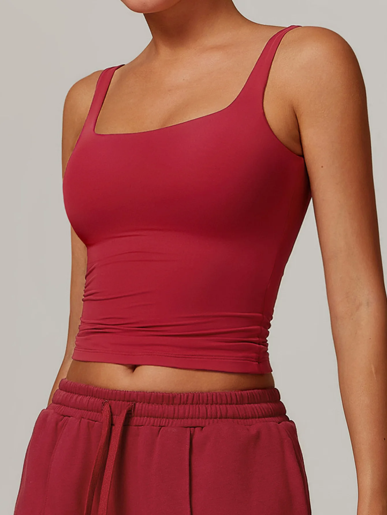 New Summer Women's Fashion Versatile Solid Color Strap Square Collar Sports Fitness Yoga Top