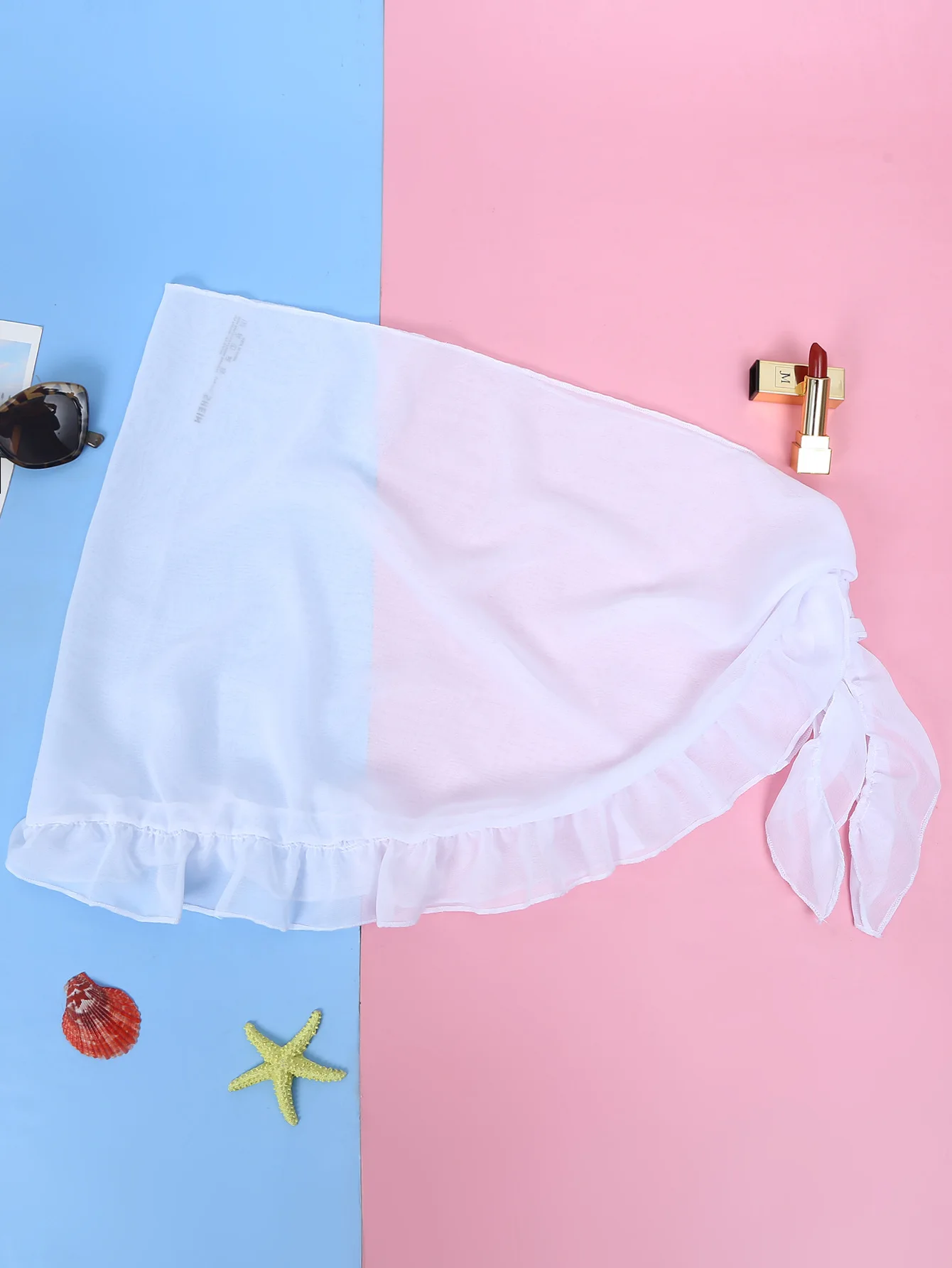 New Summer Women's Fashion Solid Color High Waist Ruffle Edge Cover Skirt Beach Wrap Skirt Swimsuit Bikini Cover Skirt Apron