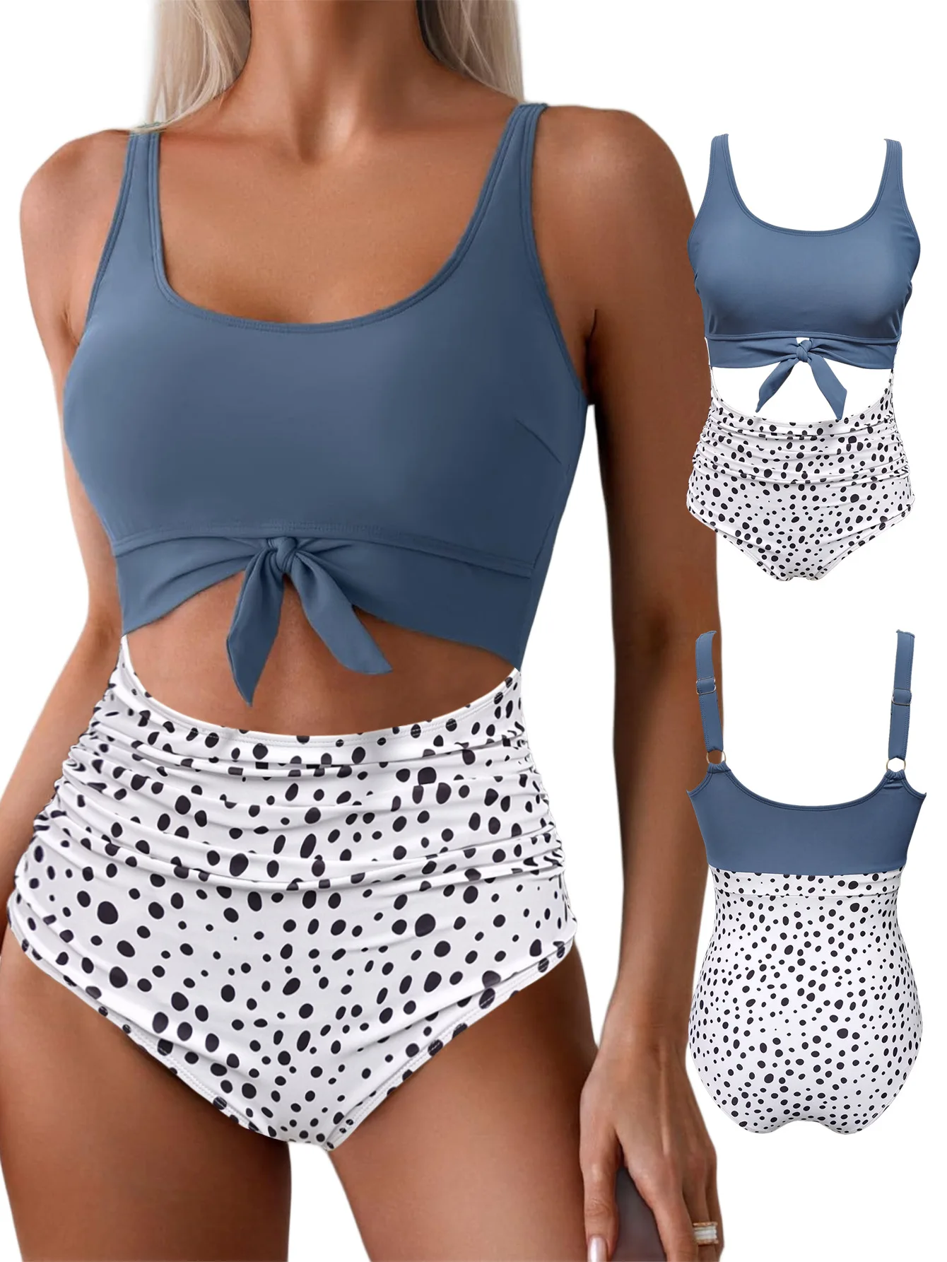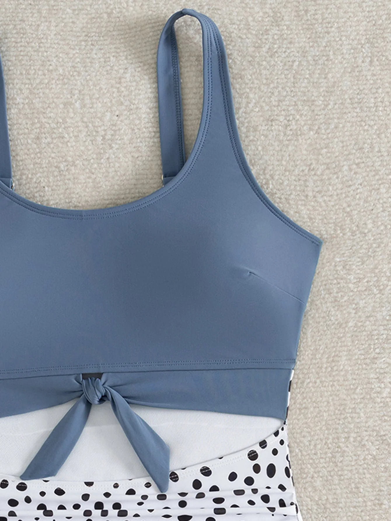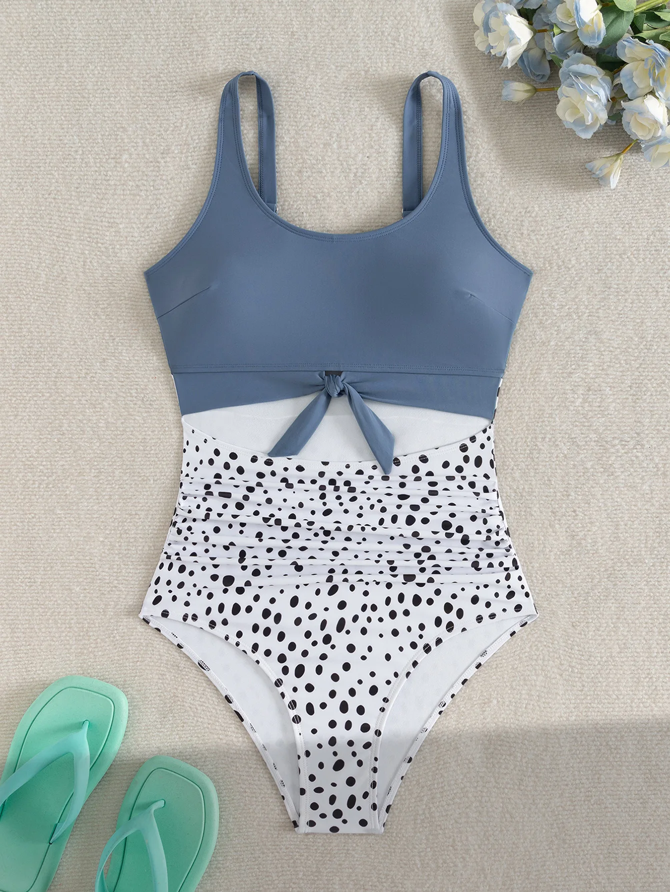 New Summer Women's Sexy and Fashionable Printed Wrinkled Hollow Strap Vest Style One-piece Swimsuit