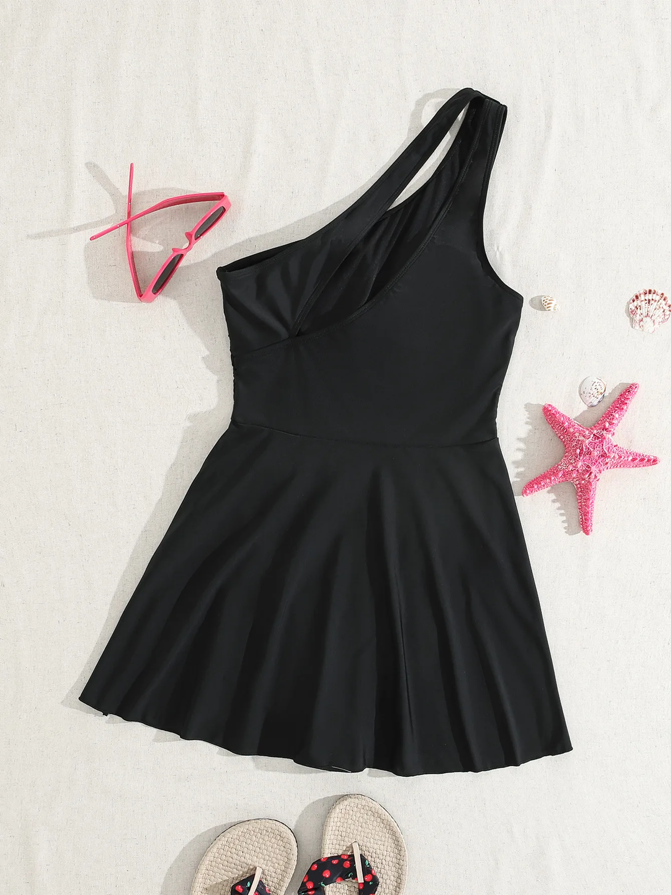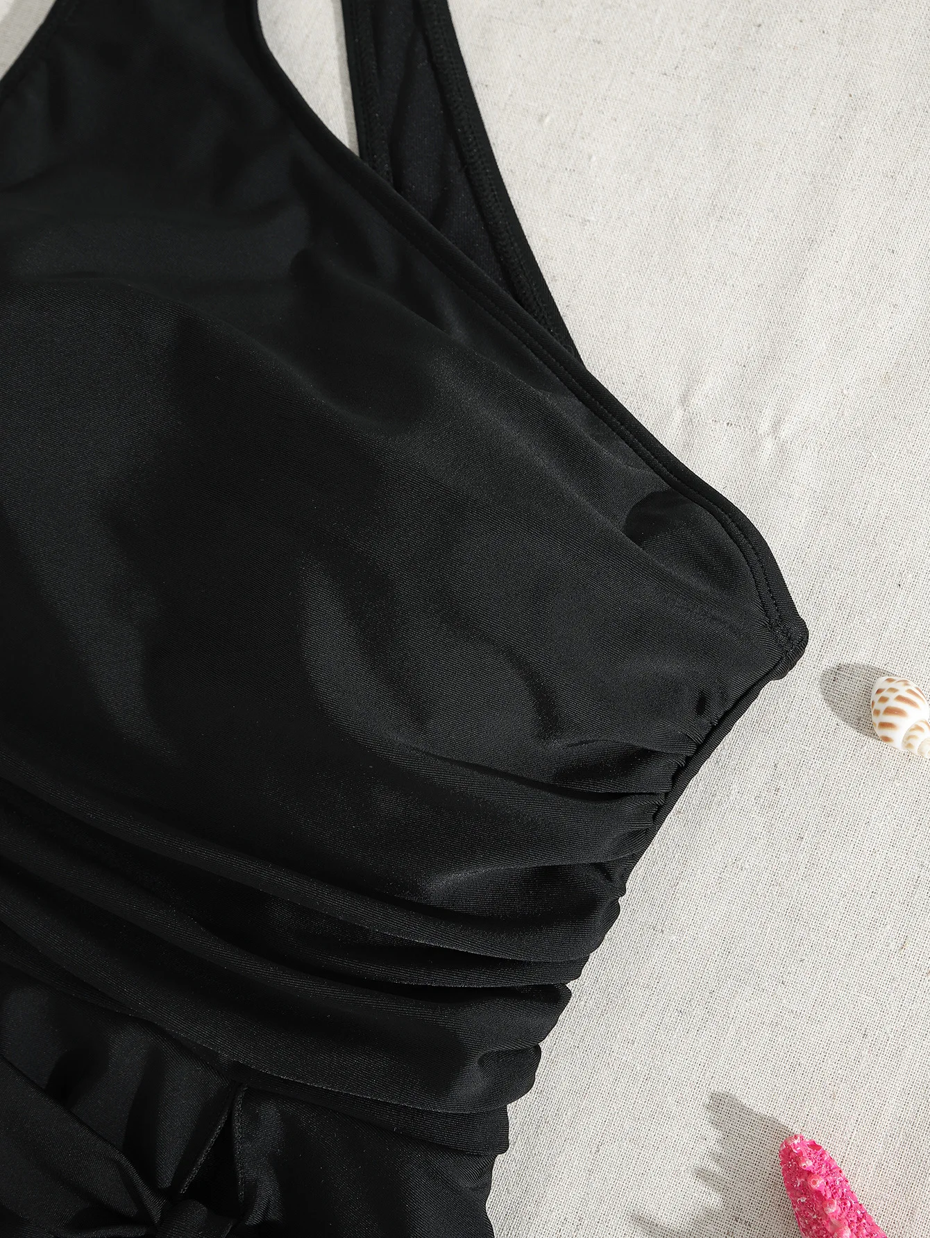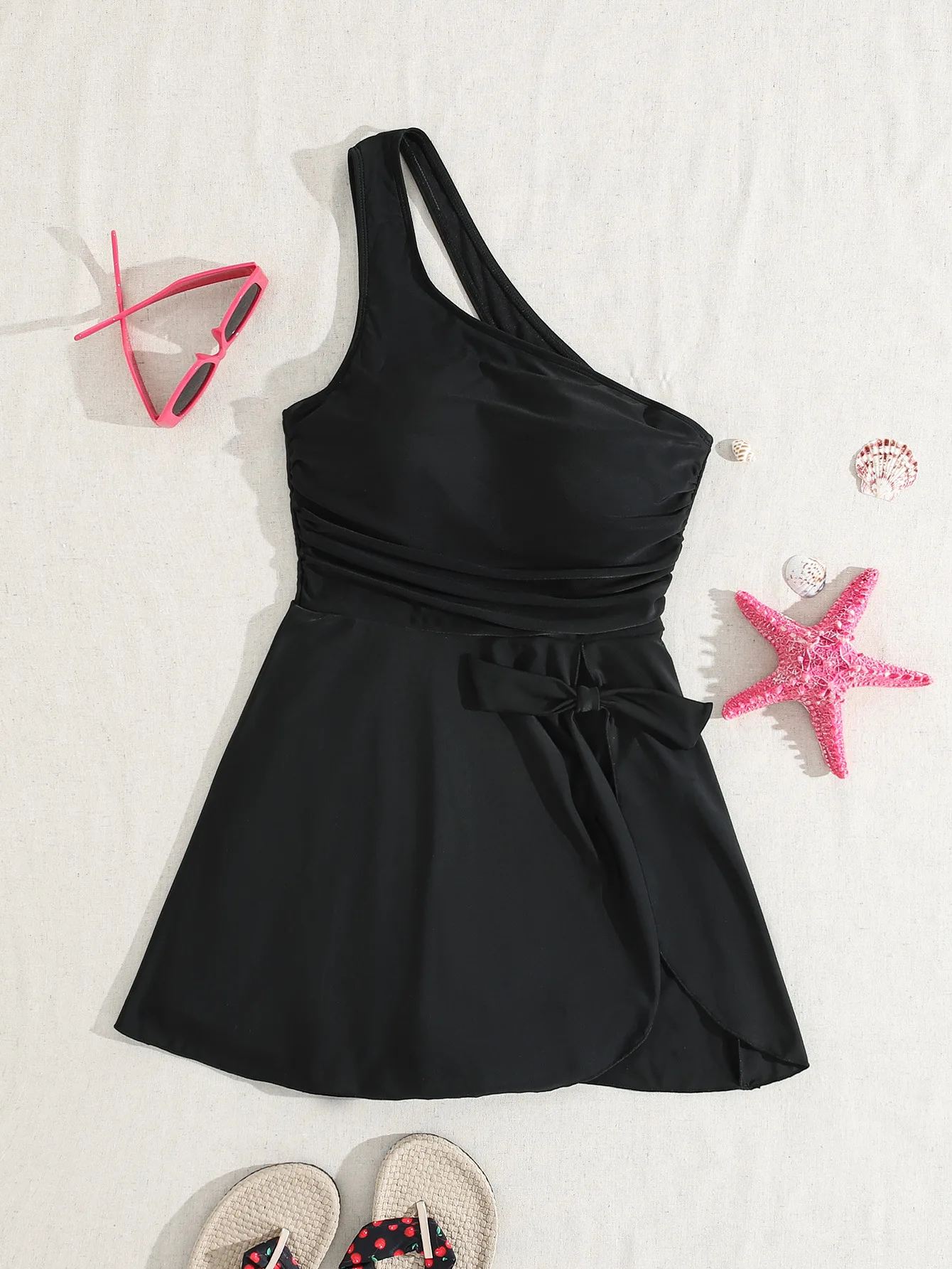 New Summer Women's Sexy and Fashionable Solid Color Single Shoulder Backless Cross Waist One-piece Bow Swimsuit