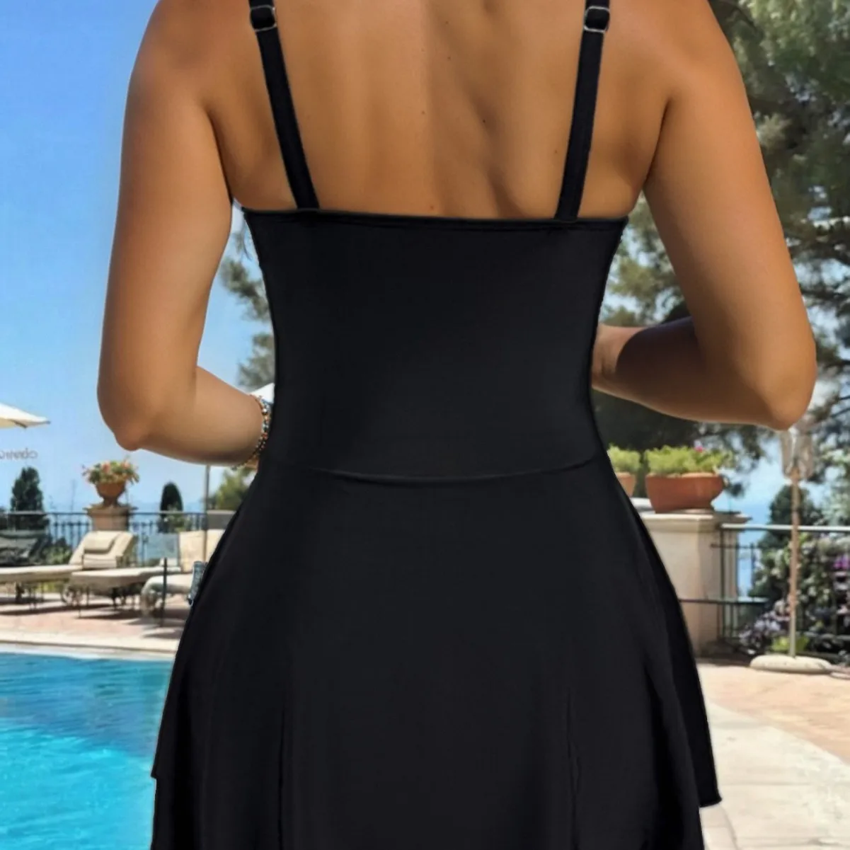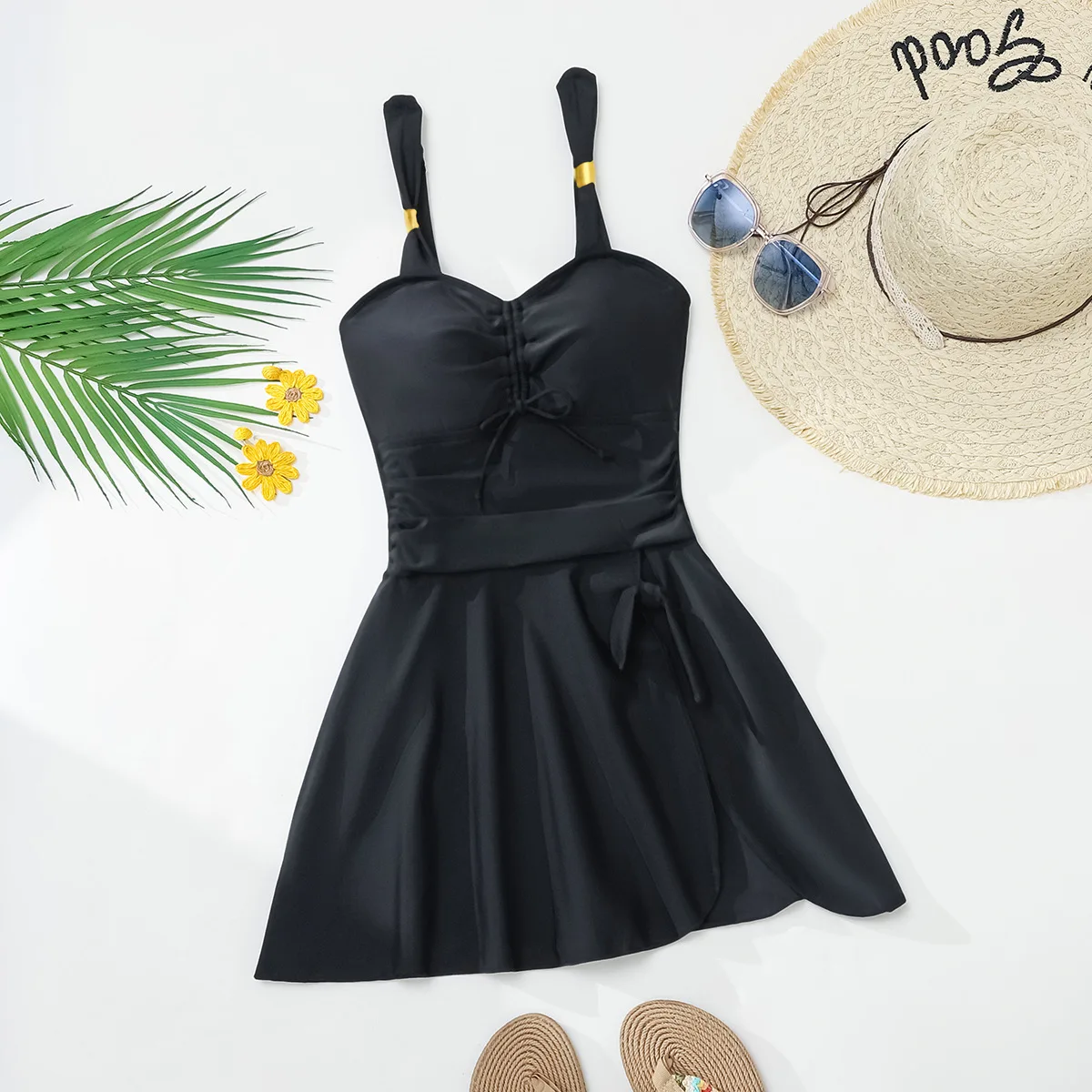 New Summer Women's Sexy Fashion Solid Color Halter Tie-Up Slimming One-Piece Swimsuit