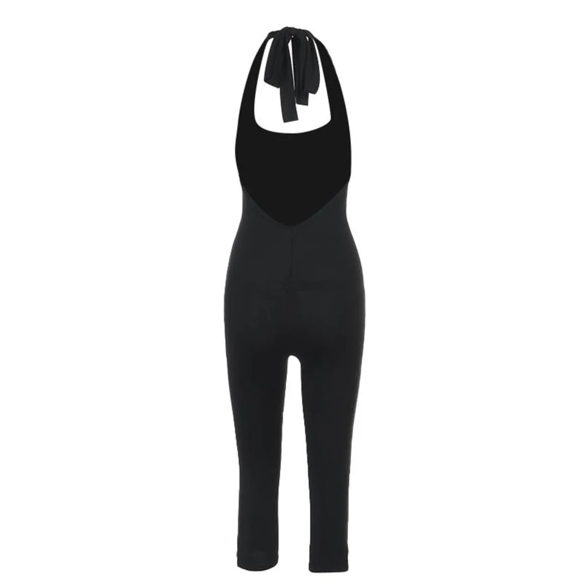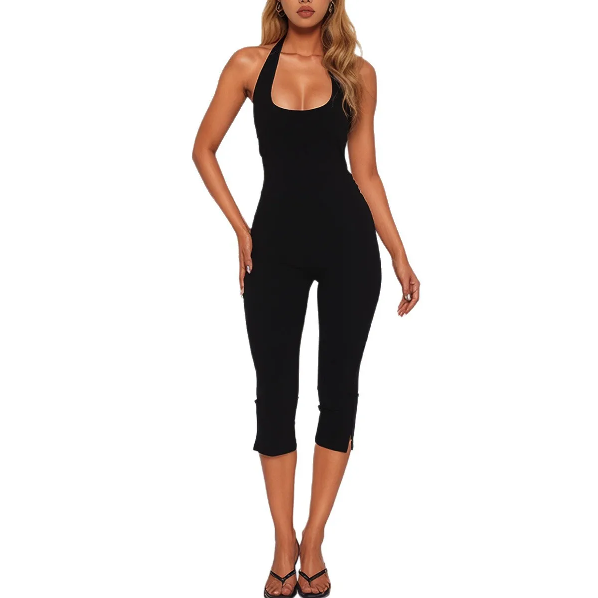 New Autumn and Winter Women's Fashionable Solid Color Vest Knee Length Backless Tight Fitting Sports and Fitness Jumpsuit