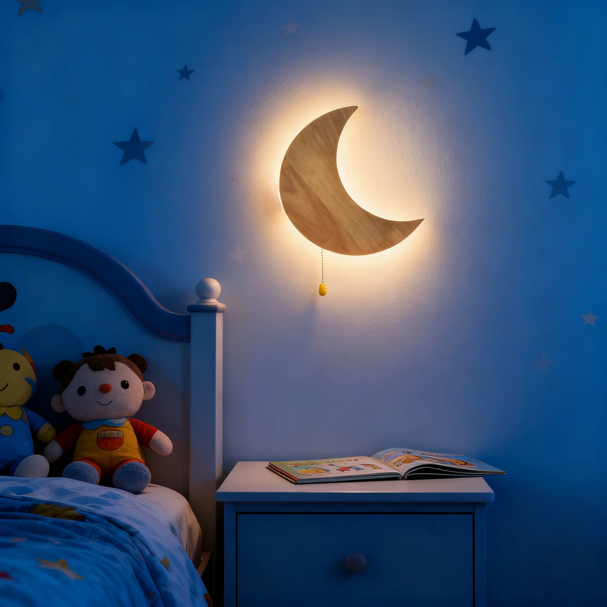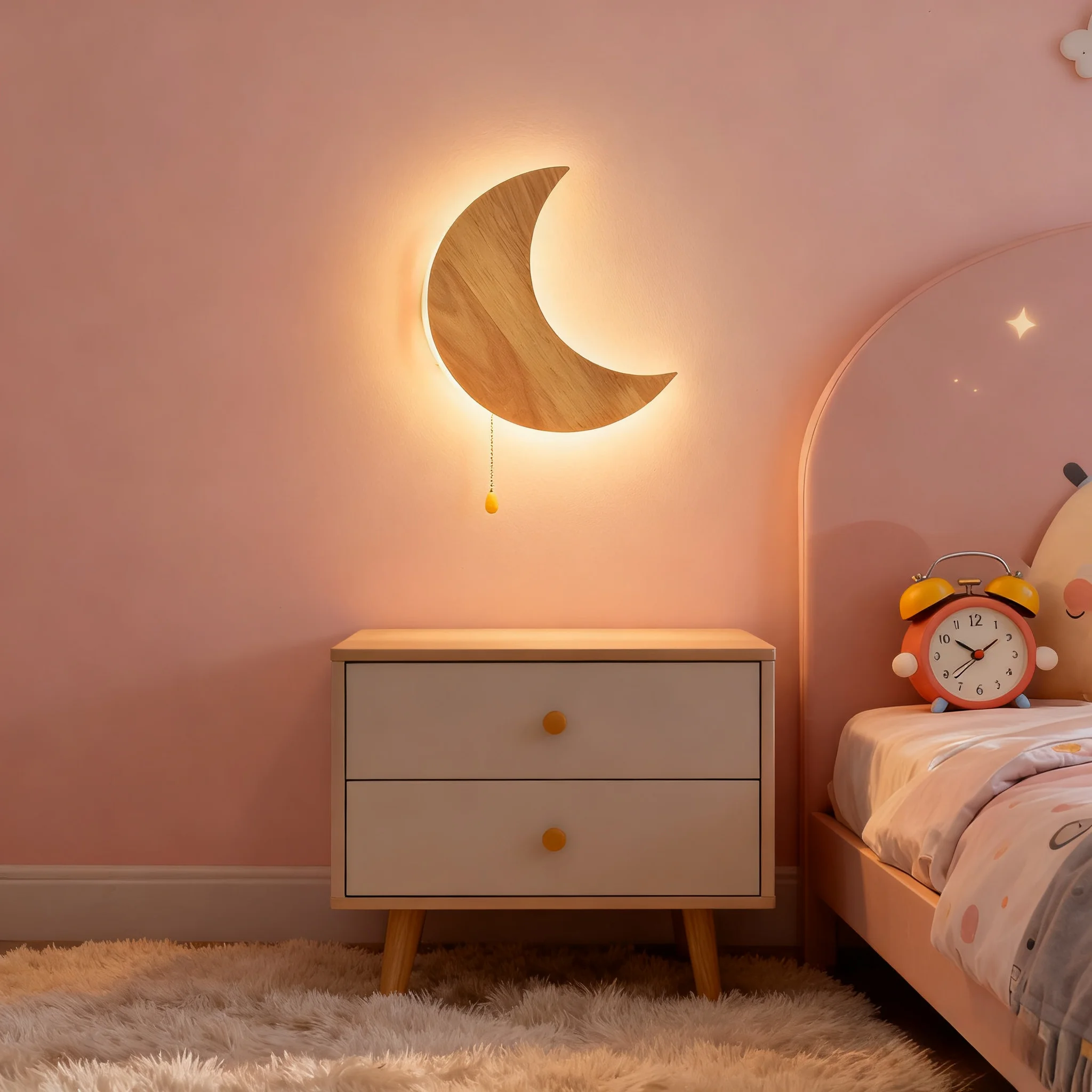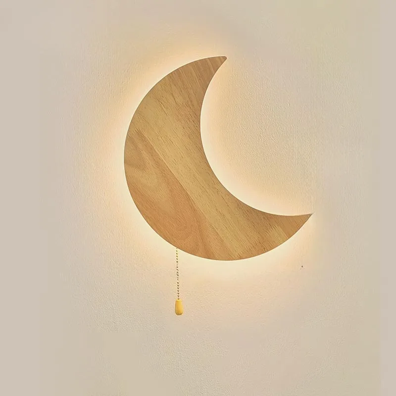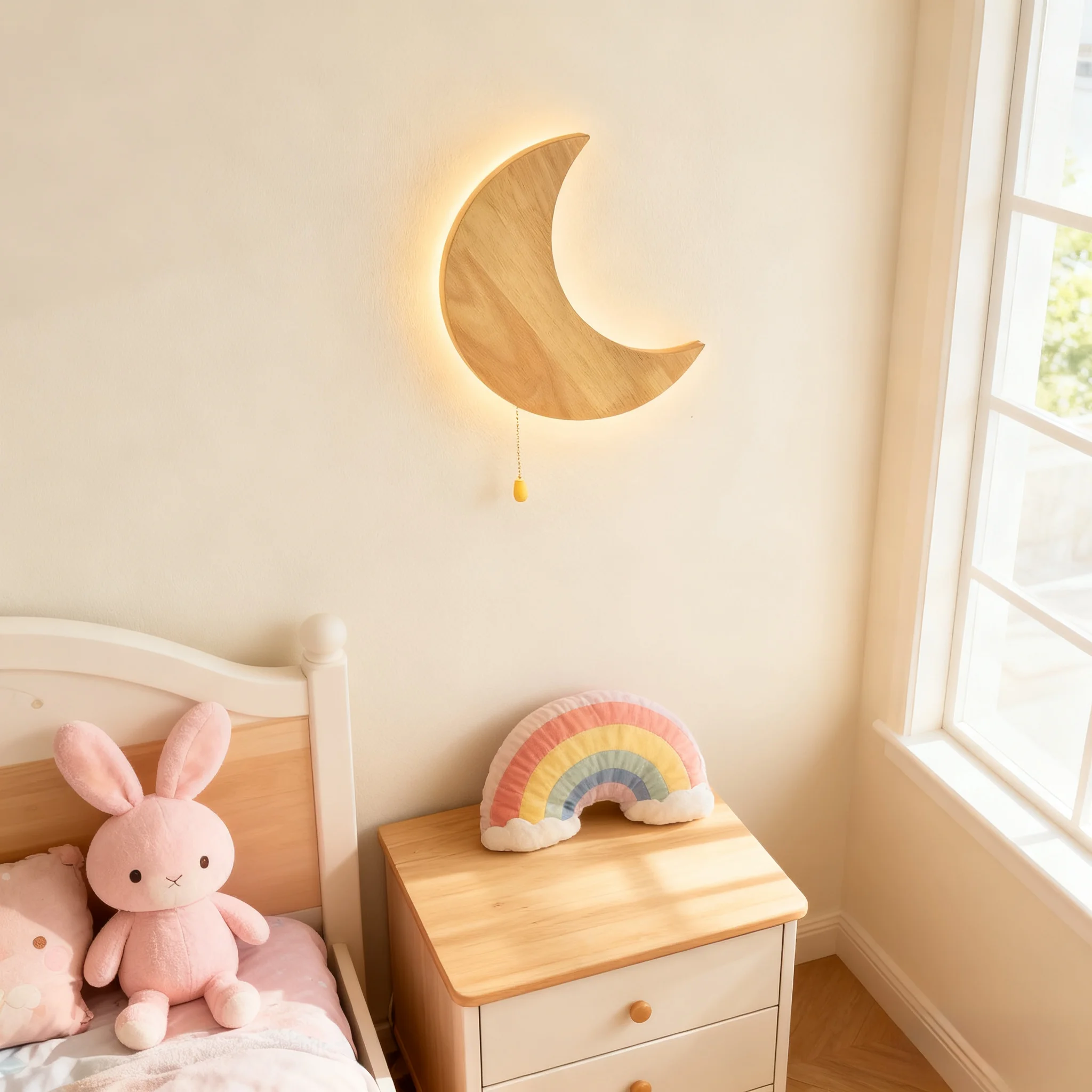 JACKSUN Modern Wood LED Crescent Moon Wall Light 3000K-6000K Dimmable Indoor Moon Lamp for Kids Bedroom Bedside New Release