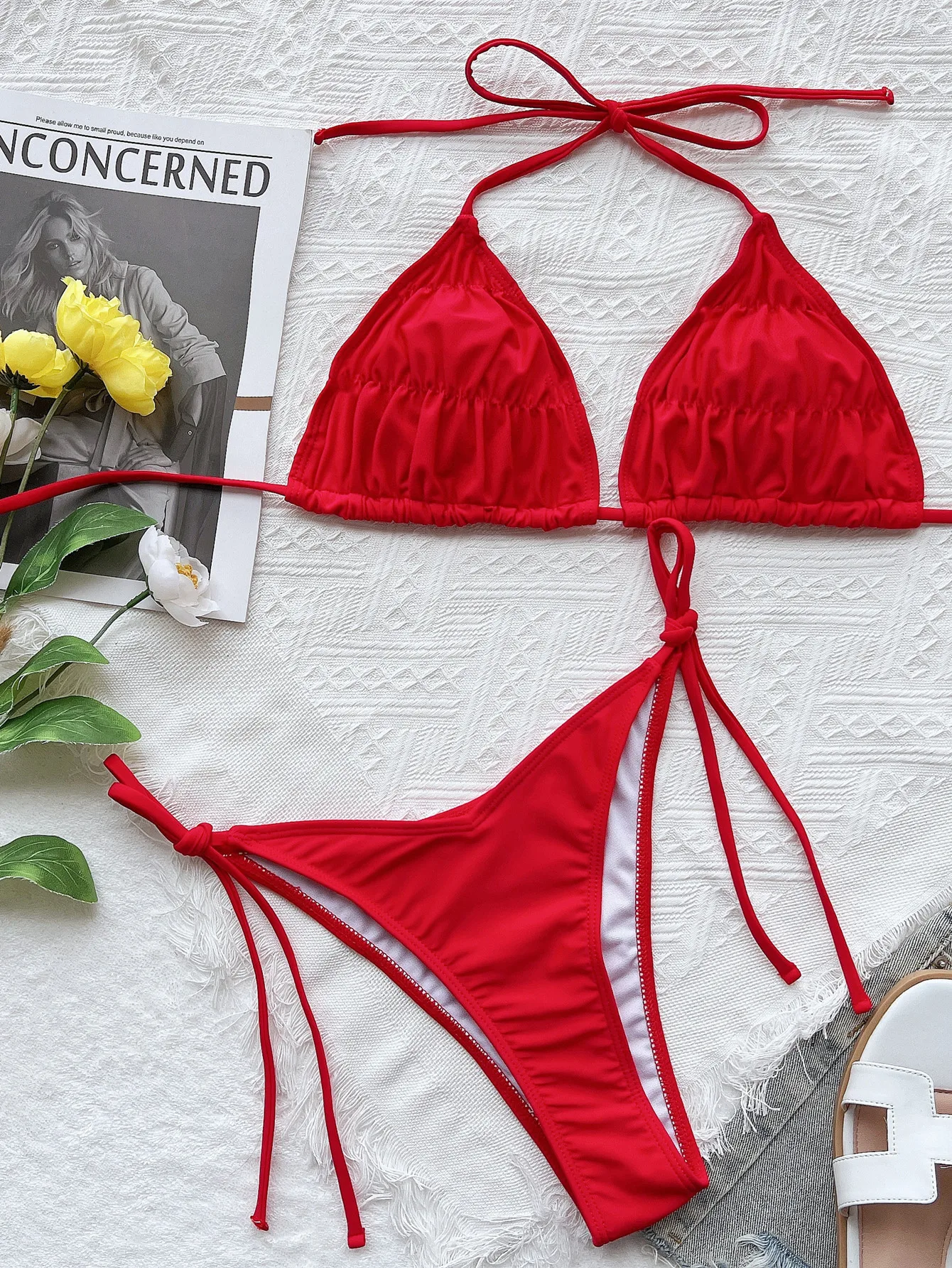 MLY Ruffle Bikini Summer Two Piece Suit Sexy Swimwear Bandage Biquini Triangle Swimsuit Printed Bathsuit