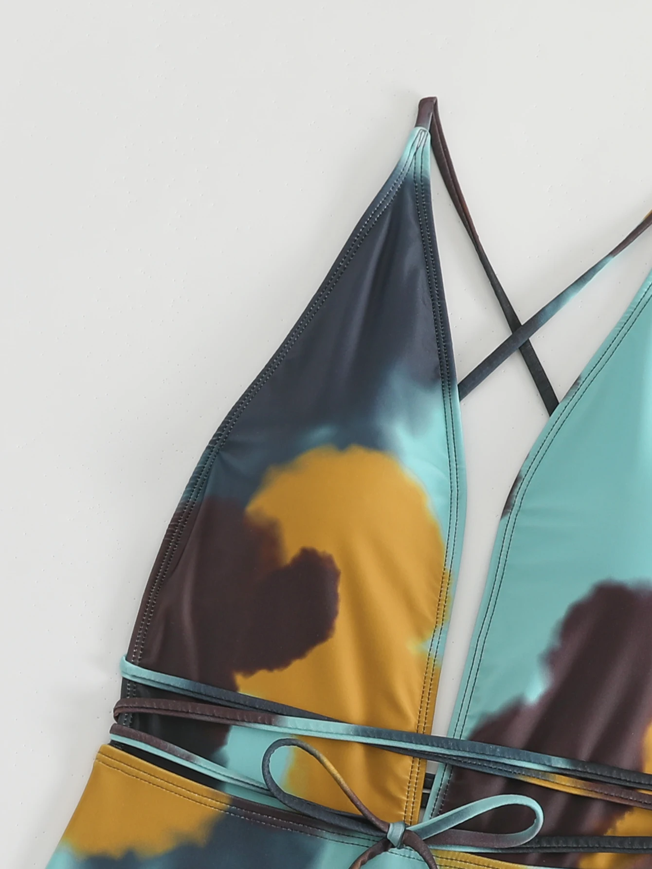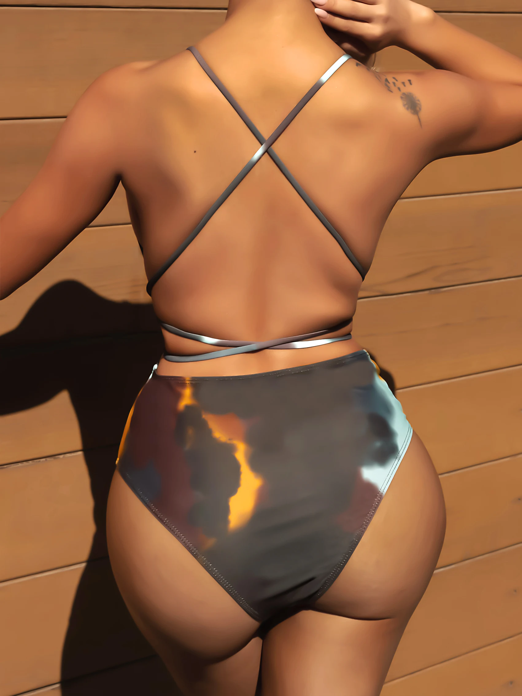 Wholesale Sexy Tie Dyed Bikini Women Deep-V New Design One Piece Cross Back Swimsuit