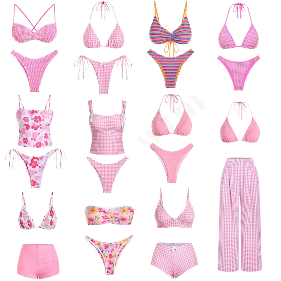 2026 Custom Crochet Knit String Cartoon Micro Bikini Set Handmade Cute Red Checkered Sexy Beachwear Floral Push-up Fruit Fashion