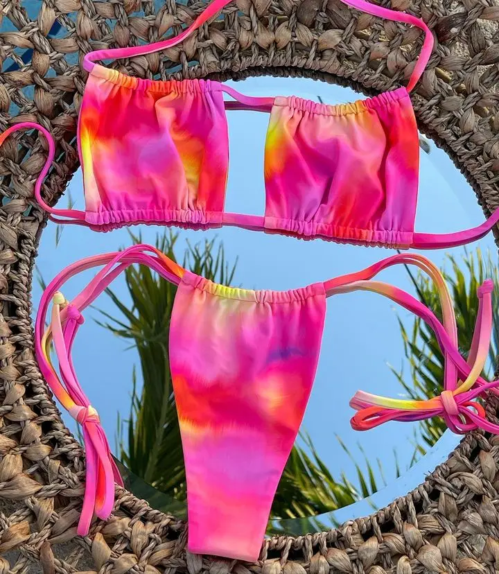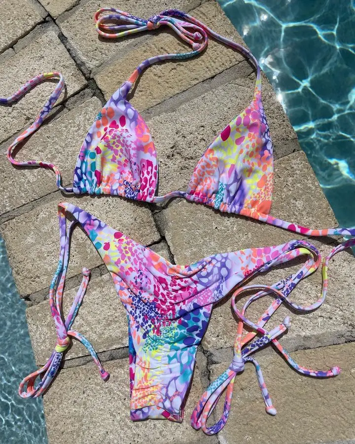 MLY Ruffle Bikini Summer Two Piece Suit Sexy Swimwear Bandage Biquini Triangle Swimsuit Printed Bathsuit