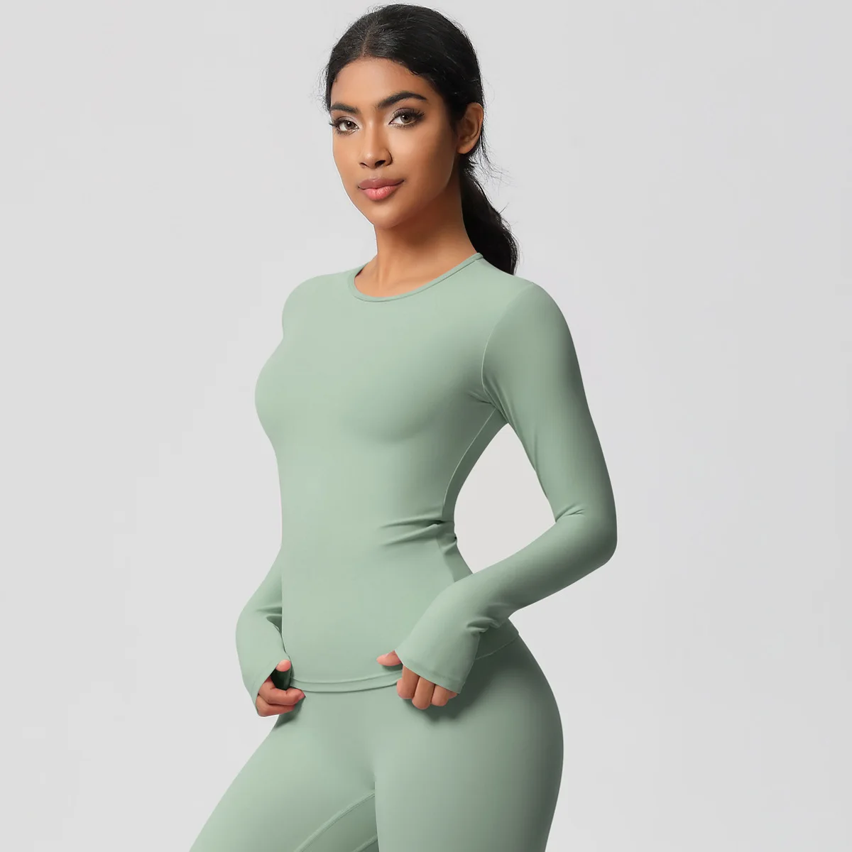 Women Long Sleeve 80% Nylon 20% Spandex Shirts High Quality Soft Daily Wear Crop Top T Shirt