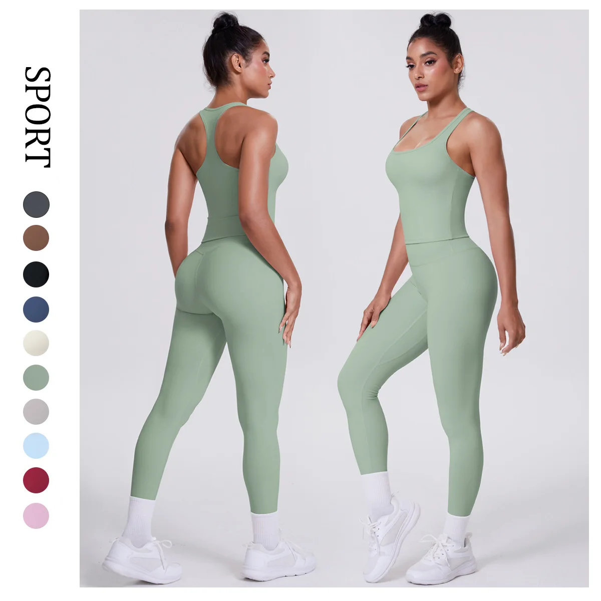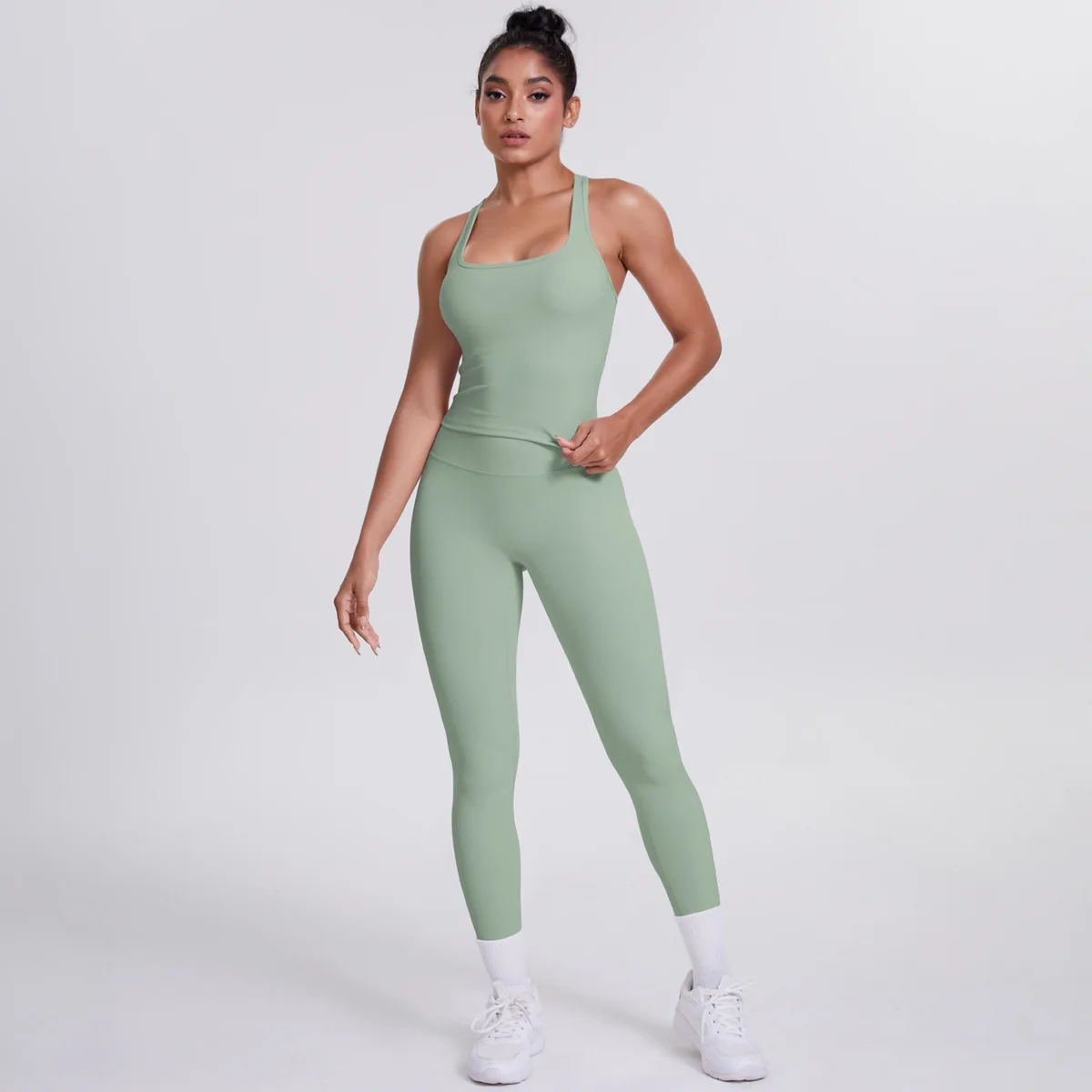 Hot Sale High Quality Sports Vest Yoga Pants Set Casual Running Fitness Yoga Clothing Set Suitable for Women