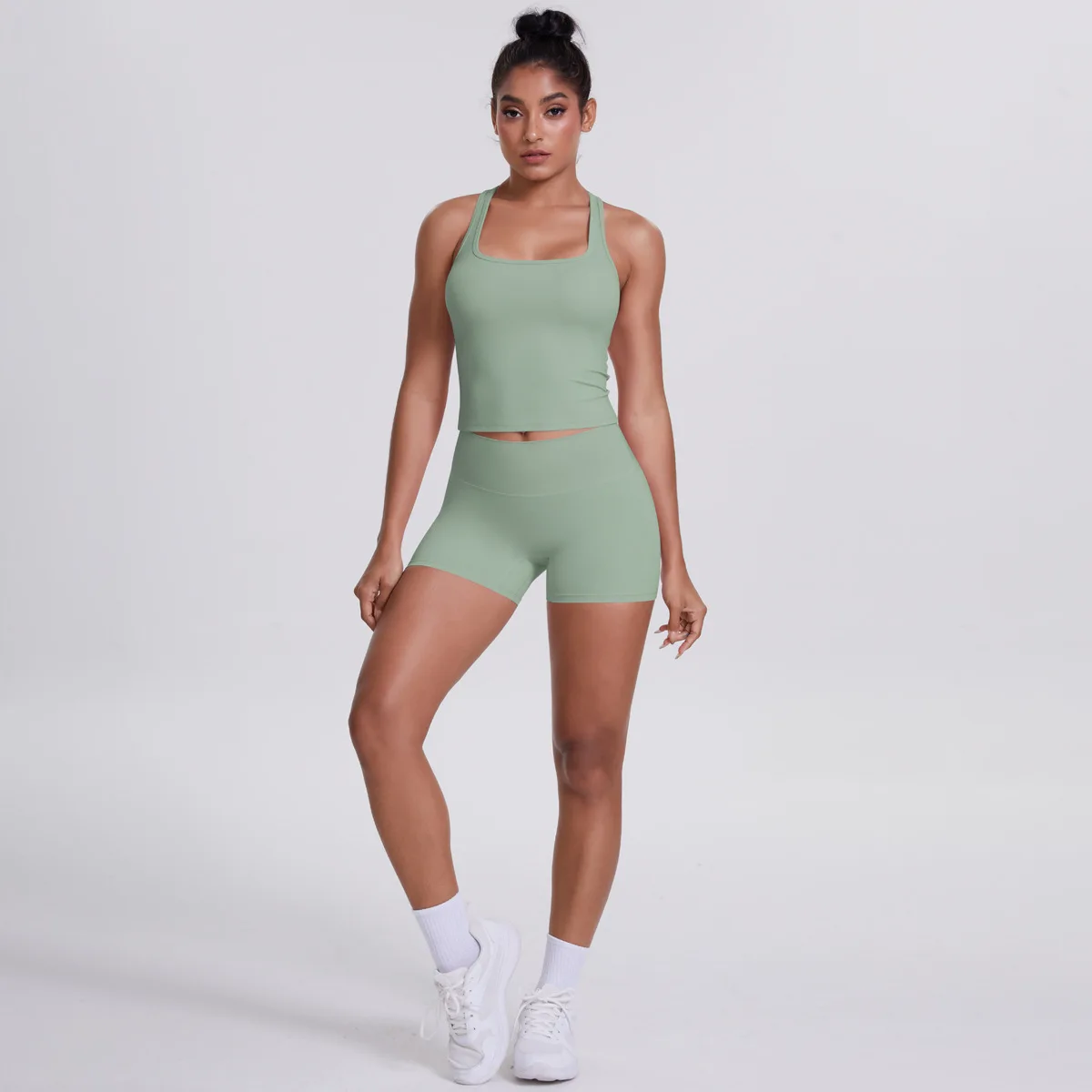 10 Colors Irregular Beauty Back Shorts Set Sport Yoga Clothing Set Tight Shorts Single Shoulder Strap Bra