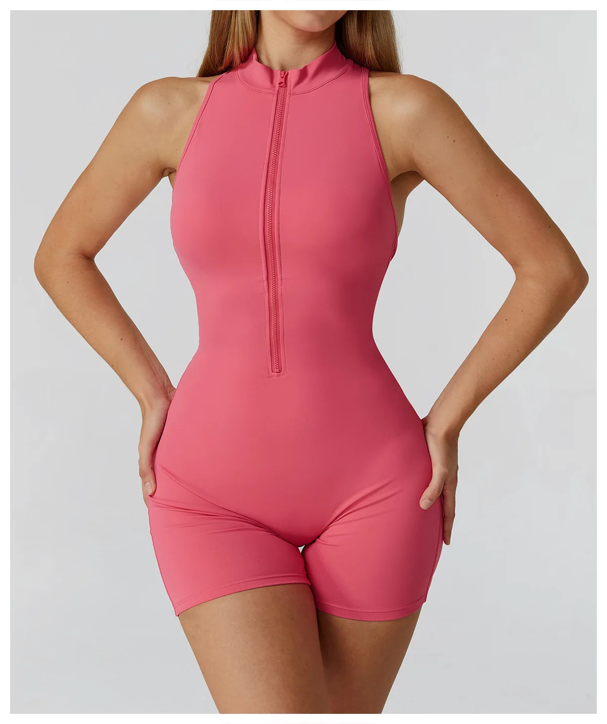Good Quality One Piece Women Front Zipper Backless Sexy Romper Yoga Wear Clothing Active Wear Fitness Scrunch Butt Jumpsuit