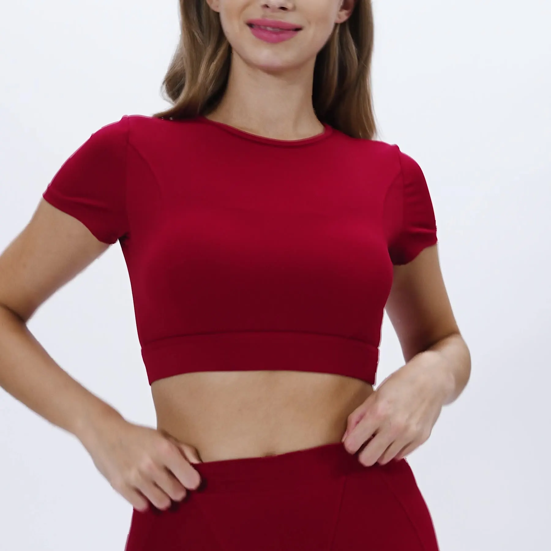 Women Short Sleeve 78% Nylon 22% Spandex Shirts High Quality Soft Daily Wear Crop Top T Shirt