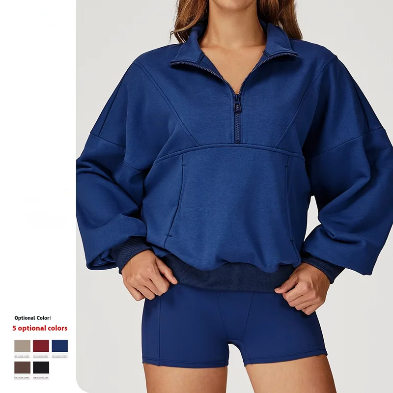 Women's Autumn Winter Sweatshirt Casual Zipper Windproof Warm All-match Loose Sportswear for Outdoor Running Plus Size