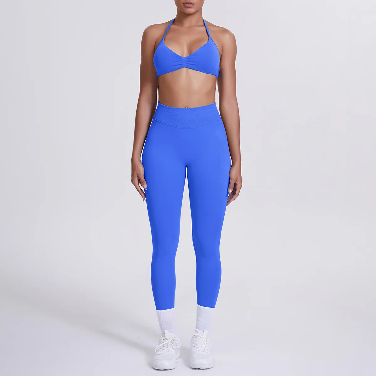 Women's High Waist Hip Breathable Quick-Drying Running Yoga Suit New Seamless Solid Color Sexy Beautiful Back Sports Front