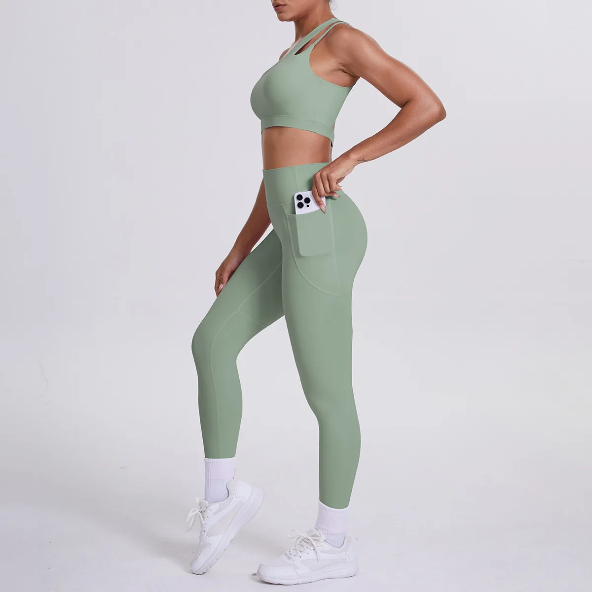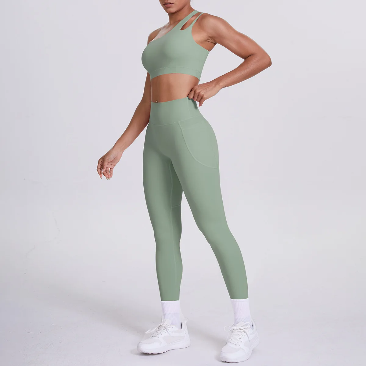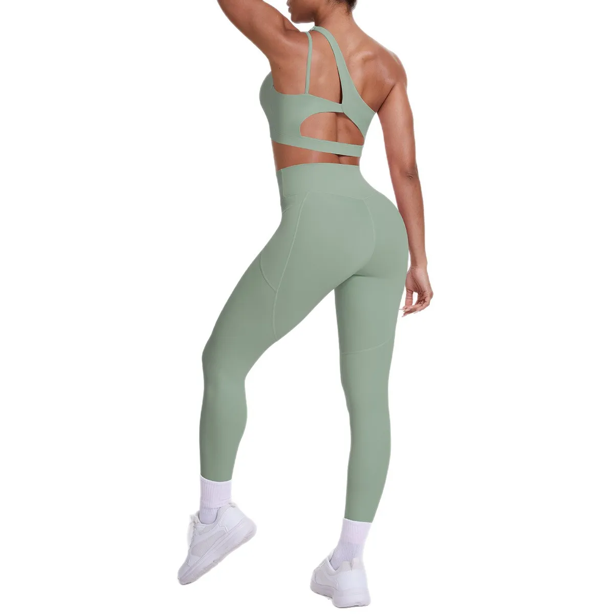 Cloud Sense Women's High Waist Hip-Lifting Yoga Sports Bra Set Quick-Drying Running Fitness Suit One-Shoulder Beautiful Solid
