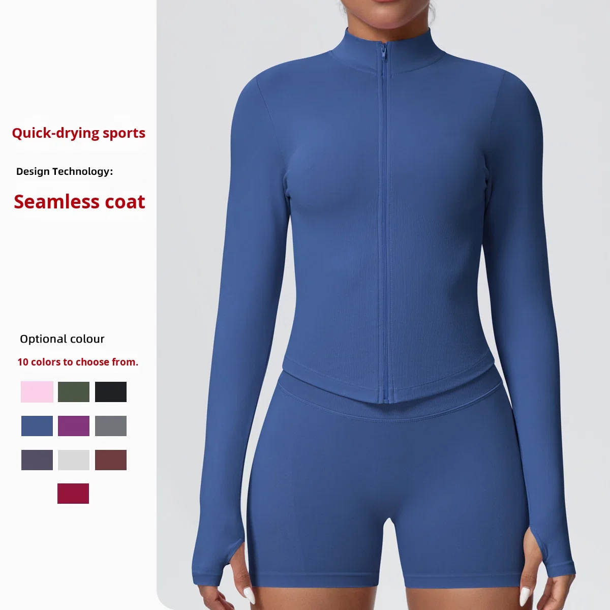 European American Seamless Stand-Up Collar Zipper Long-Sleeved Yoga Jacket Women Tight-Fitting Quick-Drying Breathable