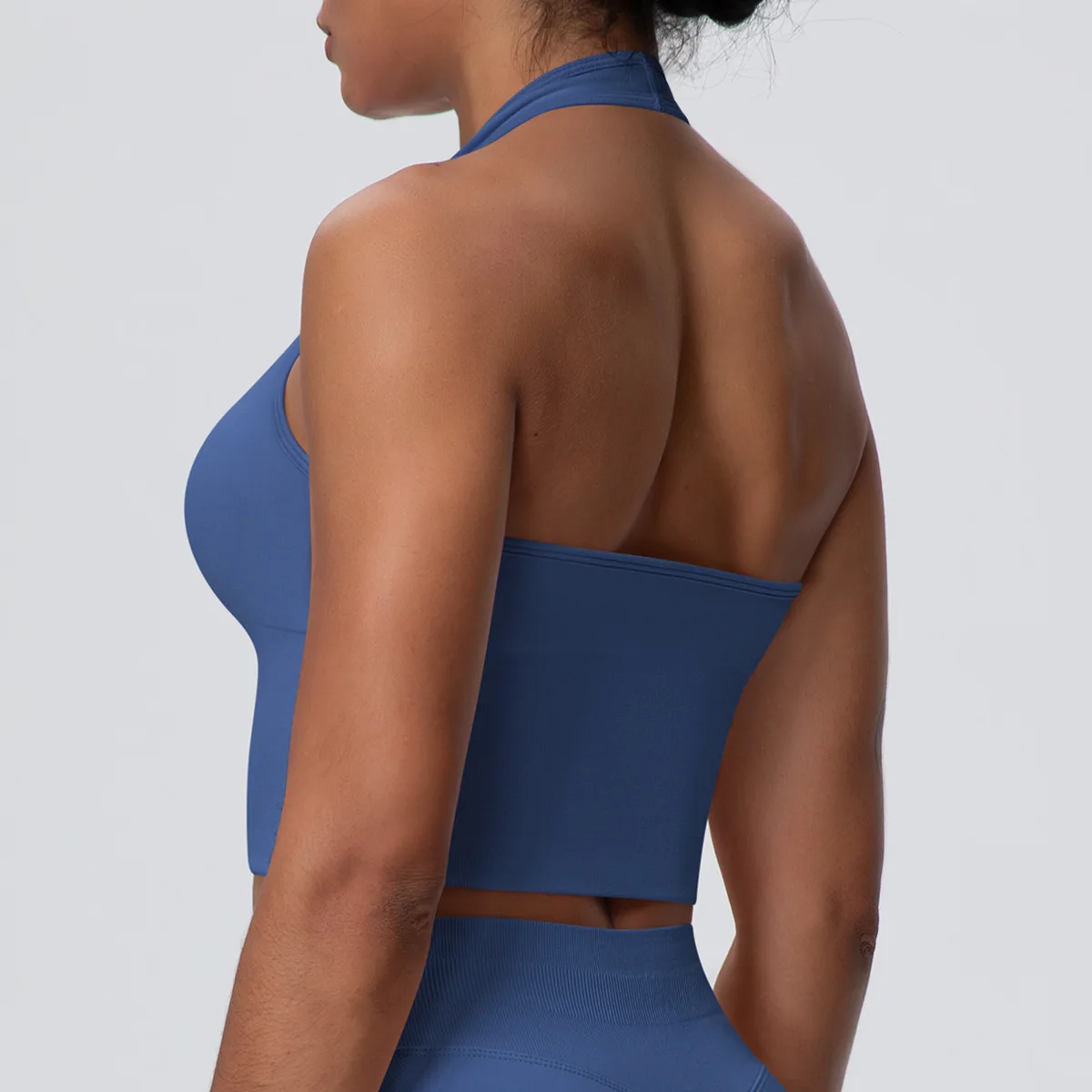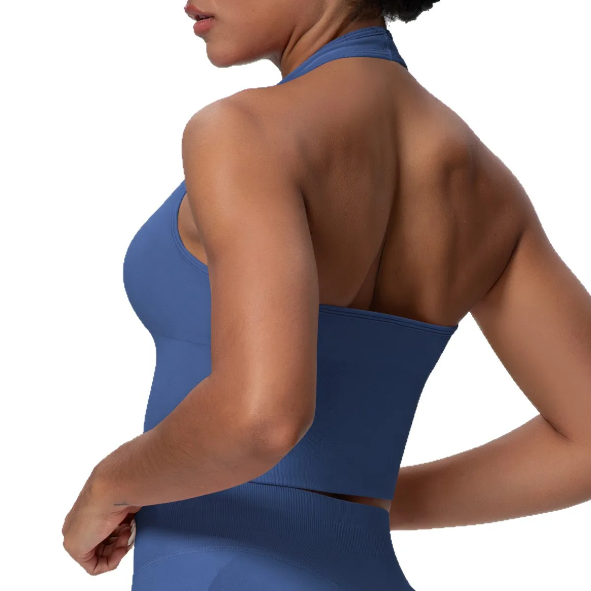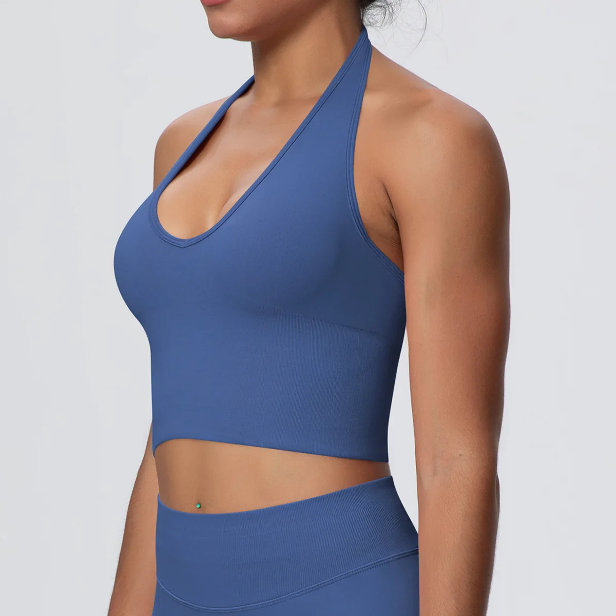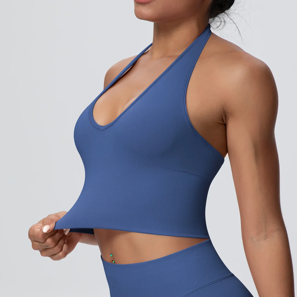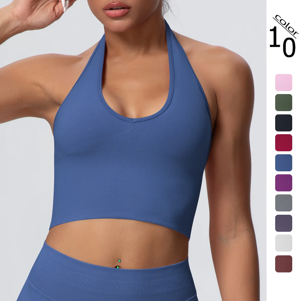 New Sexy Beautiful Back Hanging Neck High Support Crisscross Straps 90% Nylon Yoga Bra Seamless Breathable Sports Underwear