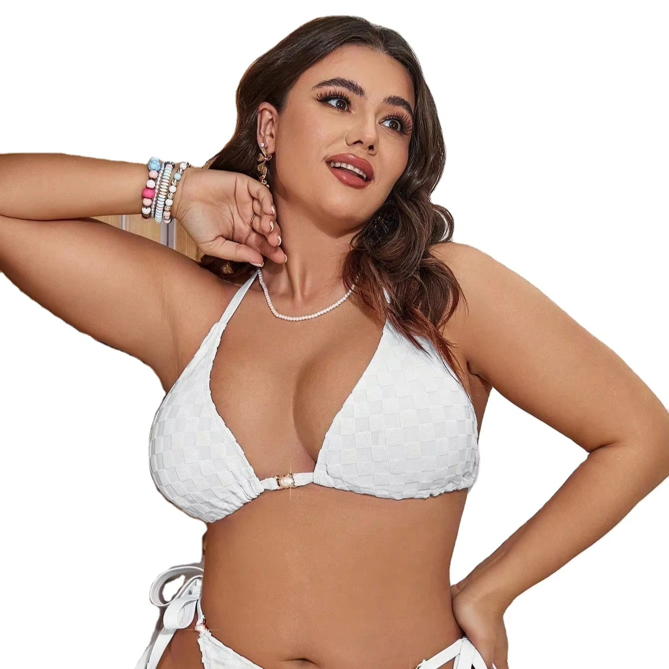 European American Jacquard Bikini Swimsuit for Women Solid Color Halter Three-Point Backless Split 2-Piece Set Spandex/Polyester