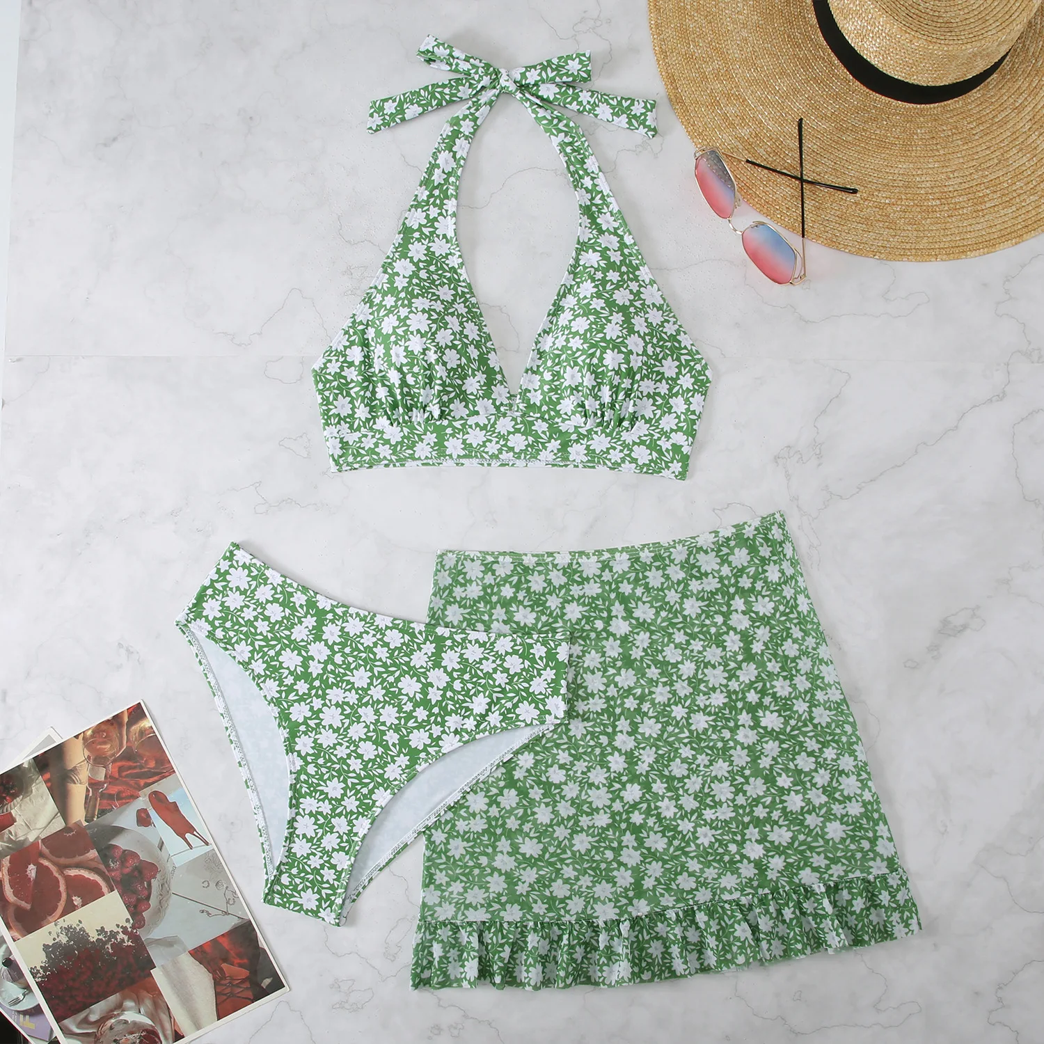 MLY Ruffle Bikini Summer Two Piece Suit Sexy Swimwear Bandage Biquini Triangle Swimsuit Printed Bathsuit