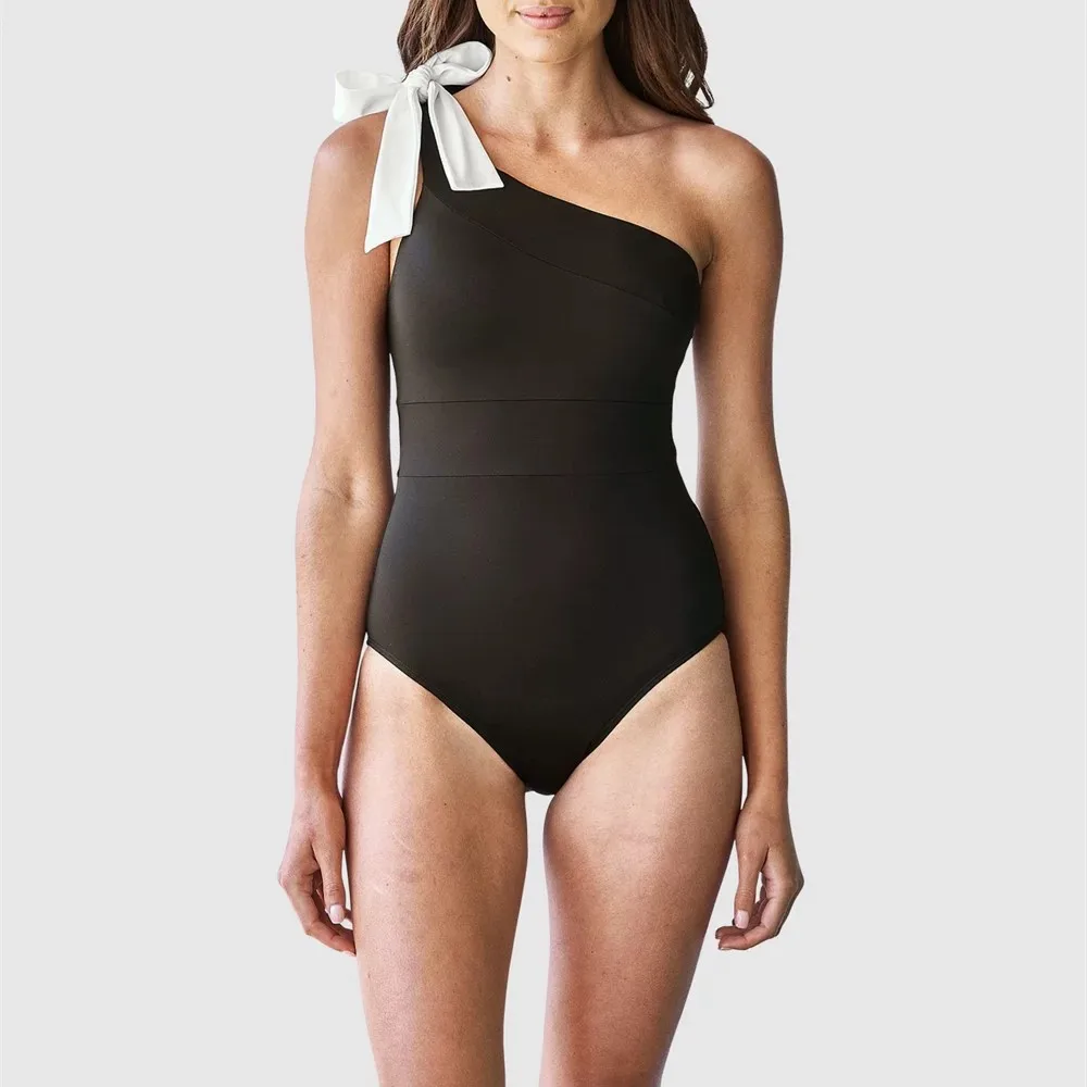 Wholesale One Piece Swimwear Solid Color Hollow Backless Swimsuit One Shoulder Bow Bikini Suit