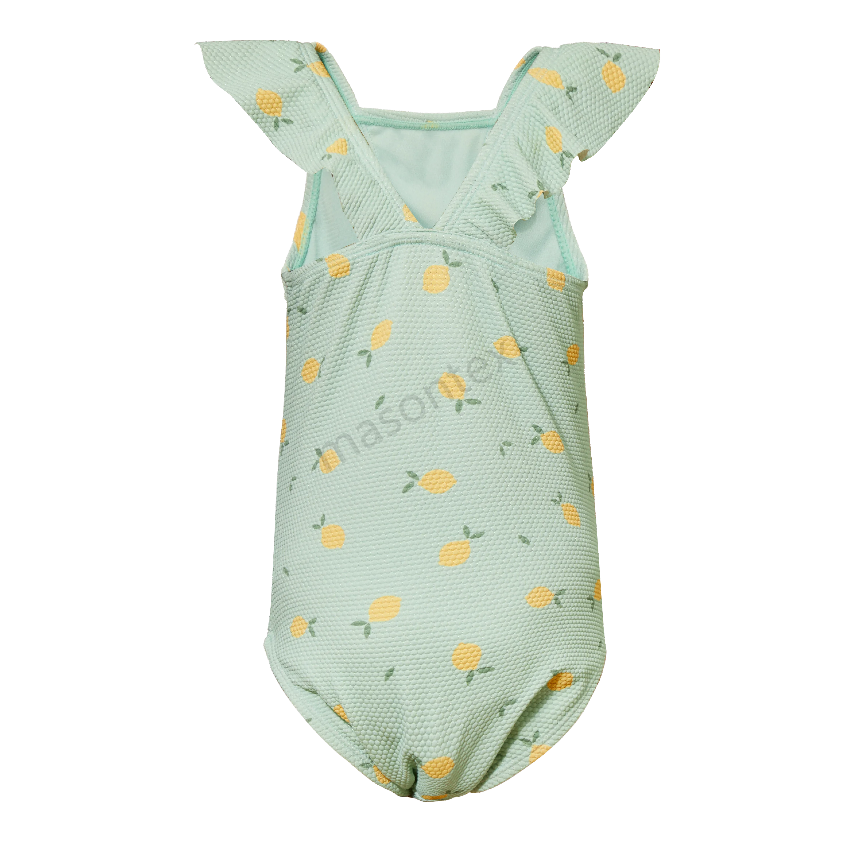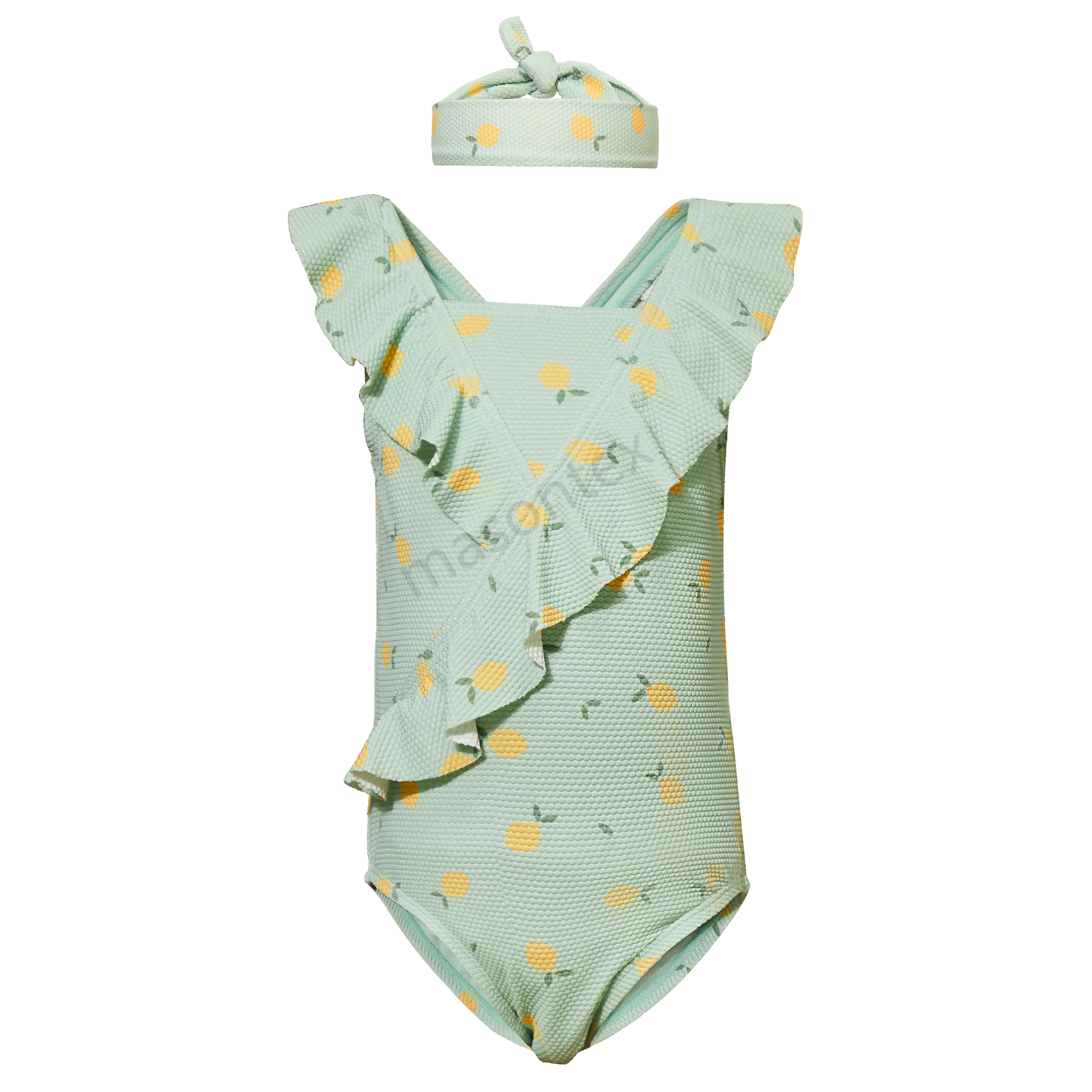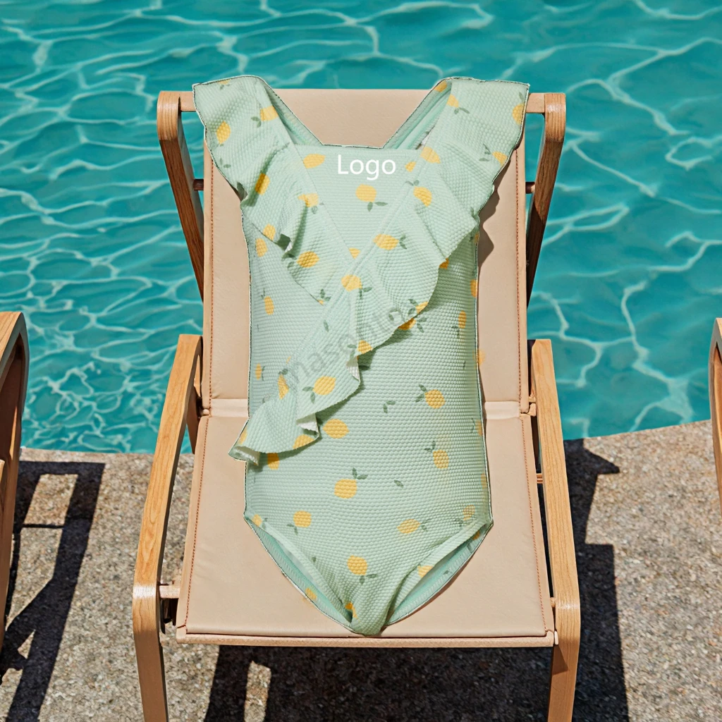 Custom Textured-Knit Solid Ruffle Trim One-Piece Kids Swimsuit for Toddler Girls OEM Service