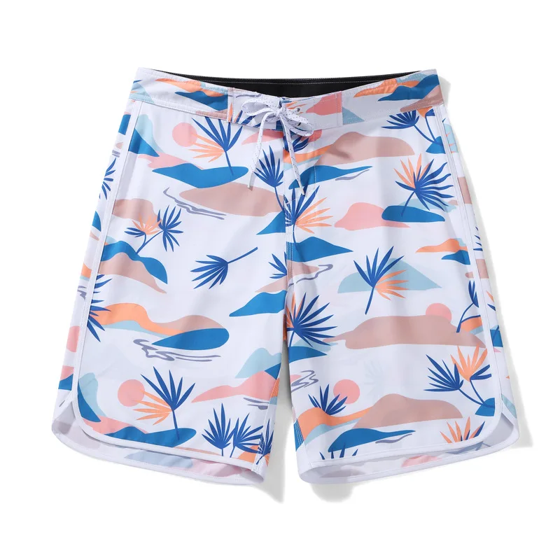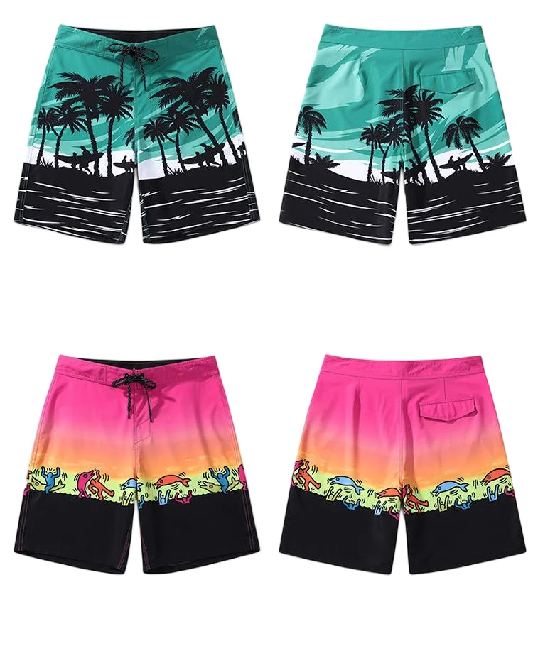 Custom Elastic Quick Dry Polyester Board Shorts & Swim Trunks for Men Casual Beach Style with Printed Design Washed Techniques