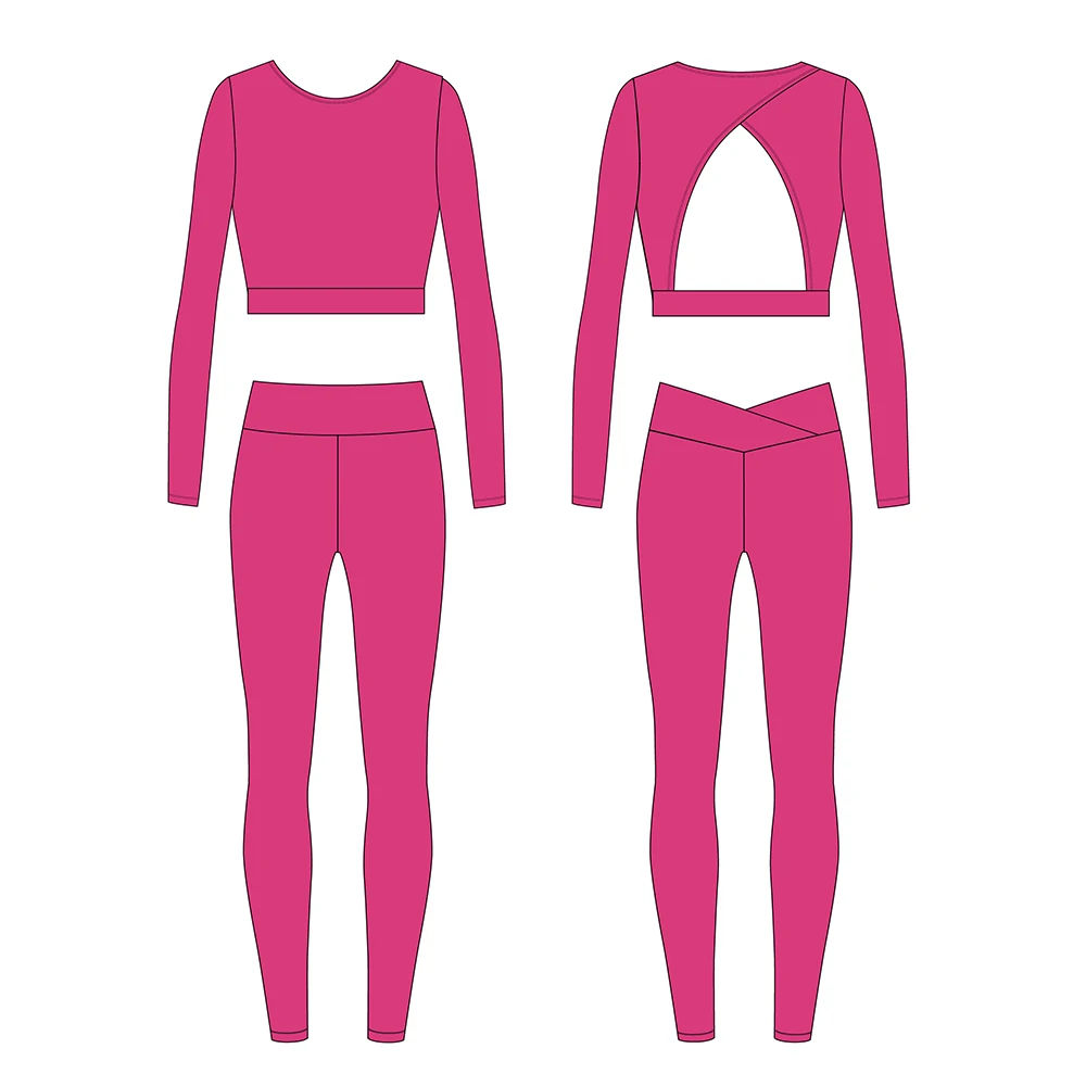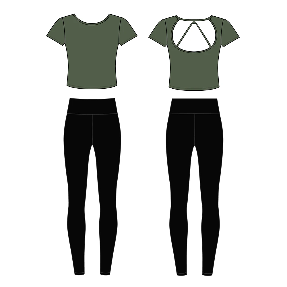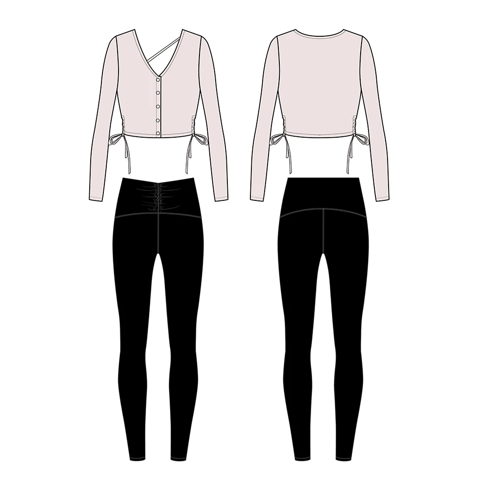 Free Design Fitness Yoga Wear Popular 2 Piece Gym Set Women Black Leggings Long Sleeve Tank Tops Plus Size Yoga Set