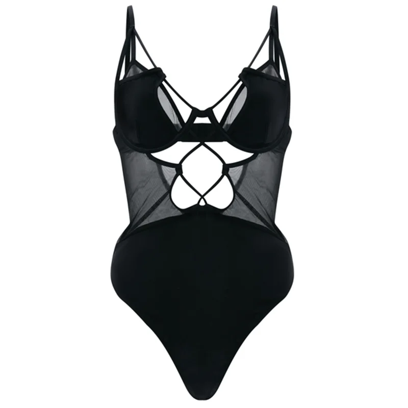 Hot Selling Comfort High Elastic Mesh Fabric Lace High-Rise Underwire Push-up Black Sheer Bodysuit Sexy Women's Underwear