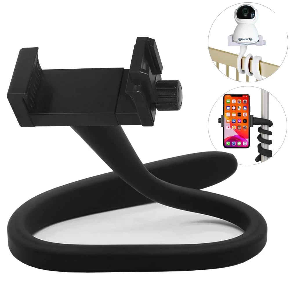 Universal White Flexible Silicon Baby Monitor Holder Longer IP Camera Stand with Hole-Free Crib Cradle Rod for Desk or Bed Use