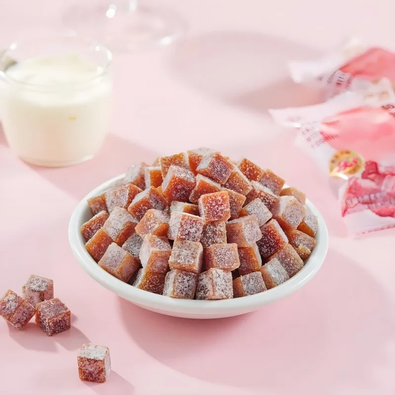 Bulk Round Hawthorn Snacks Dried Sweet Syrup Vacuum Pack Candies Hawthorn Coated Powder Chewy Dices Ready to Eat Hawthorn Dices