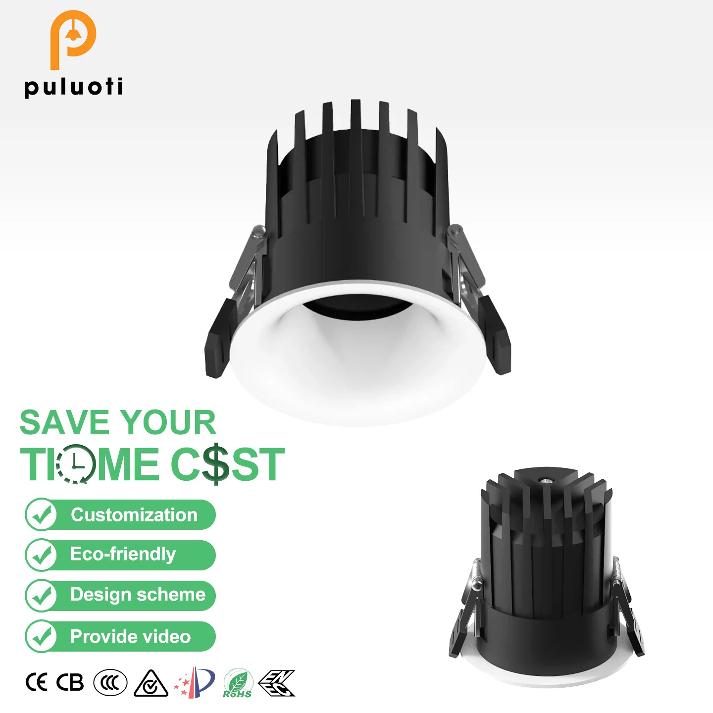 PULUOTI Custom Superbright LED Spotlight 8W-15W 3CCT 75mm Recessed Ceiling Spot Lights IP20 for Home and Office Lighting White