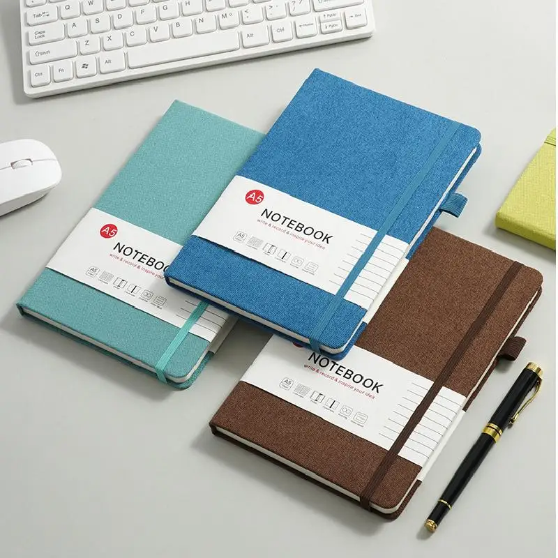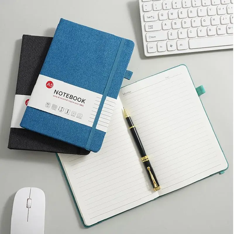 Customizable A5 Office Hardcover Fabric & PP Cover Saddle Stitched Gift Notebook with Logo Print