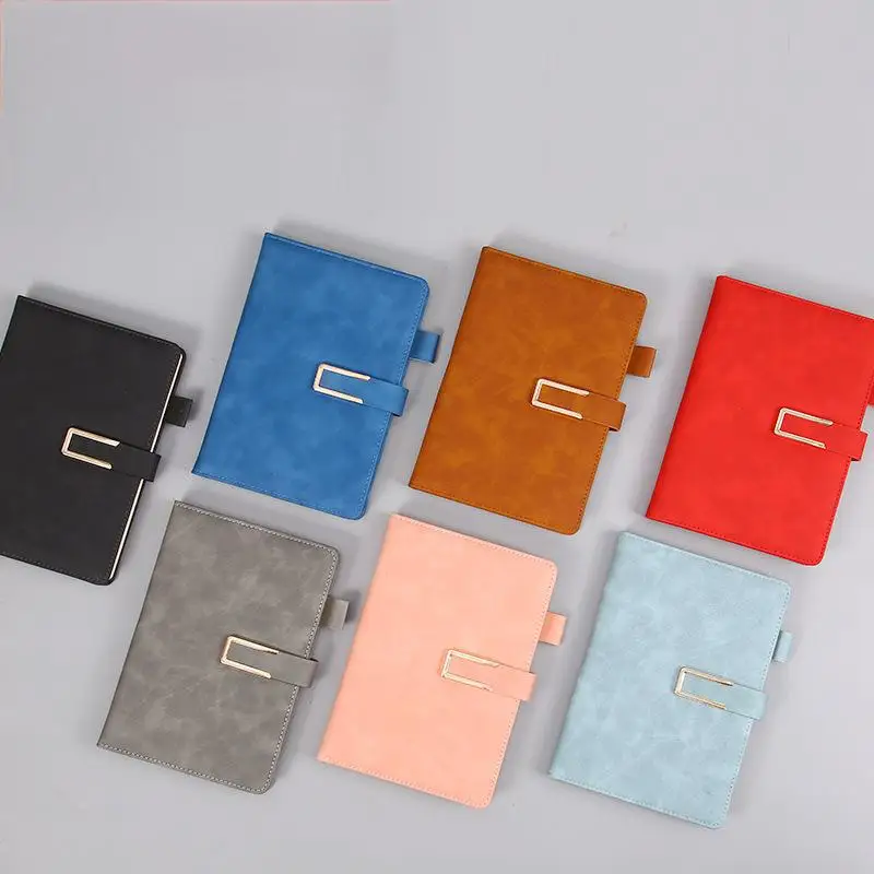 2026 Custom Logo Magnet Buckle Leather Hardcover A5 Agenda Daily Diary Notebook