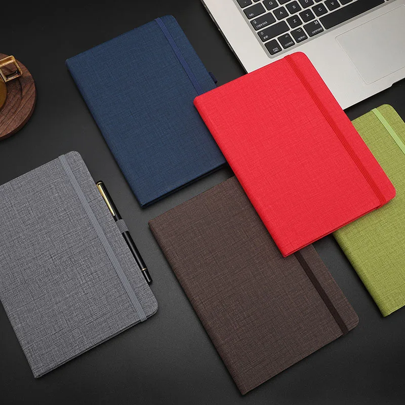 A5 Strap Hard Surface Mounting Book, Elastic Strap PU Notebook, Business Office Meeting Record Book, Elastic Strap Pen Hanging