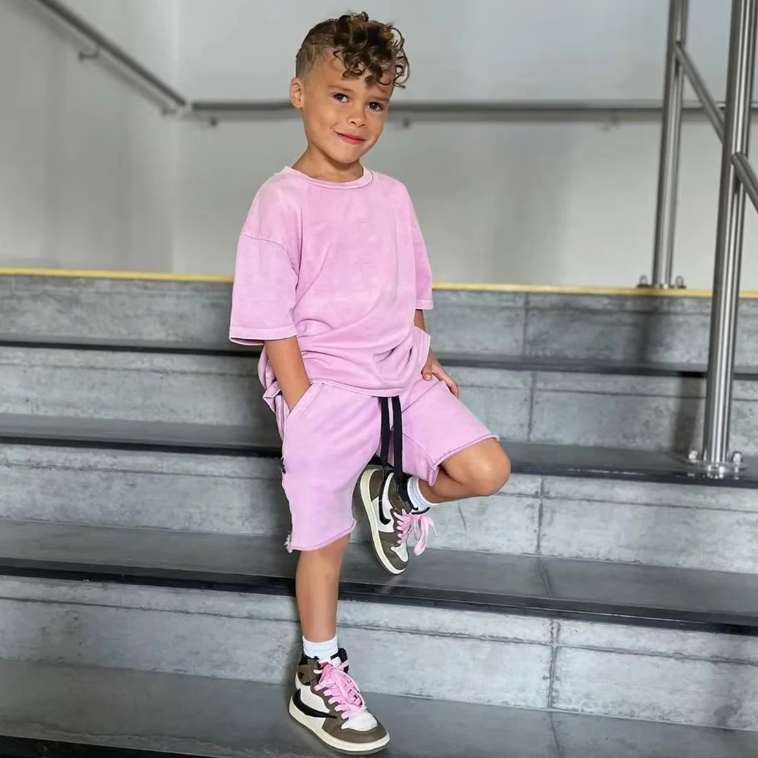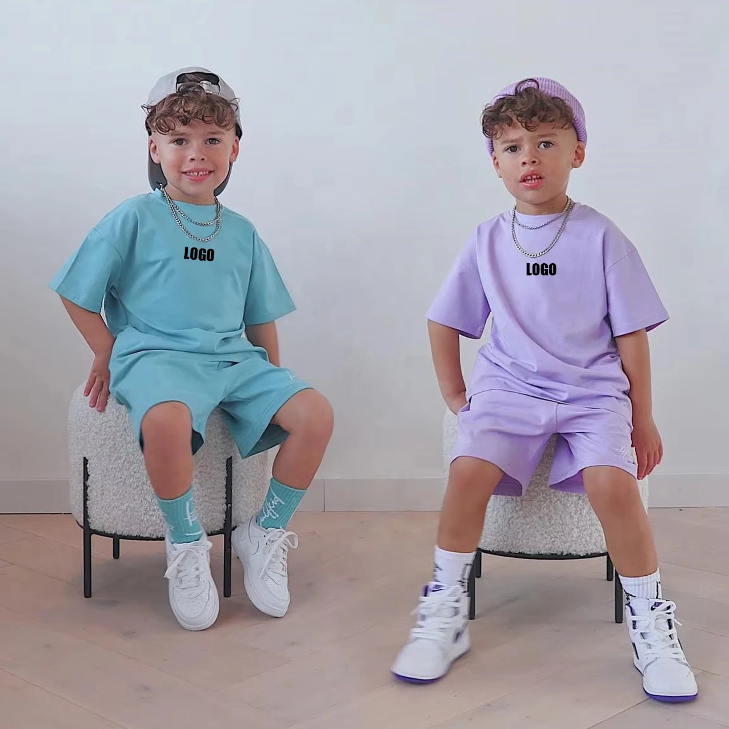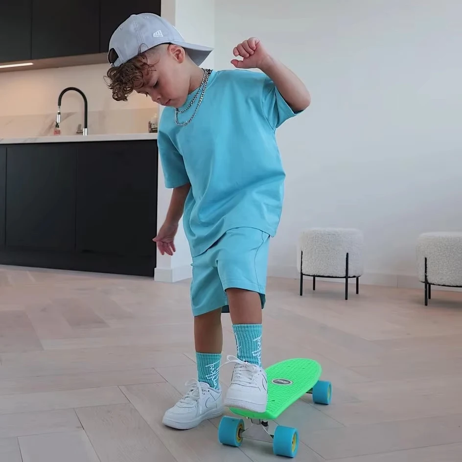 Custom Summer Streetwear Toddler Boy Girl Outfits Custom 100% Cotton Oversized T Shirt Shorts Set Unisex Kids Clothing Set