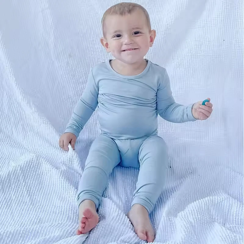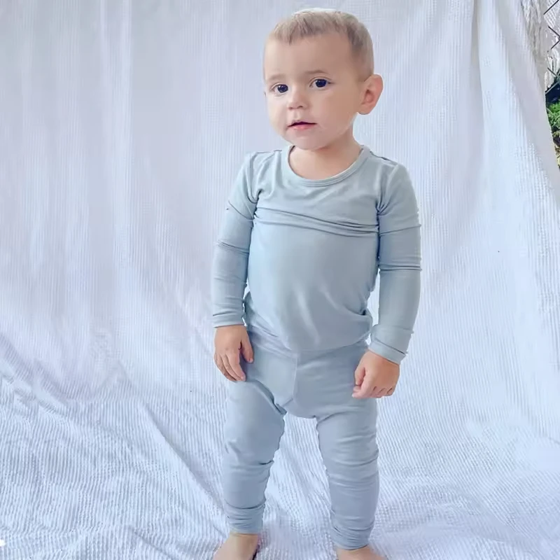 Custom Unisex Solid Blank Bamboo Baby Clothes Set Long Sleeve Snug Fit Two Piece Bamboo Pajamas Set for Kids